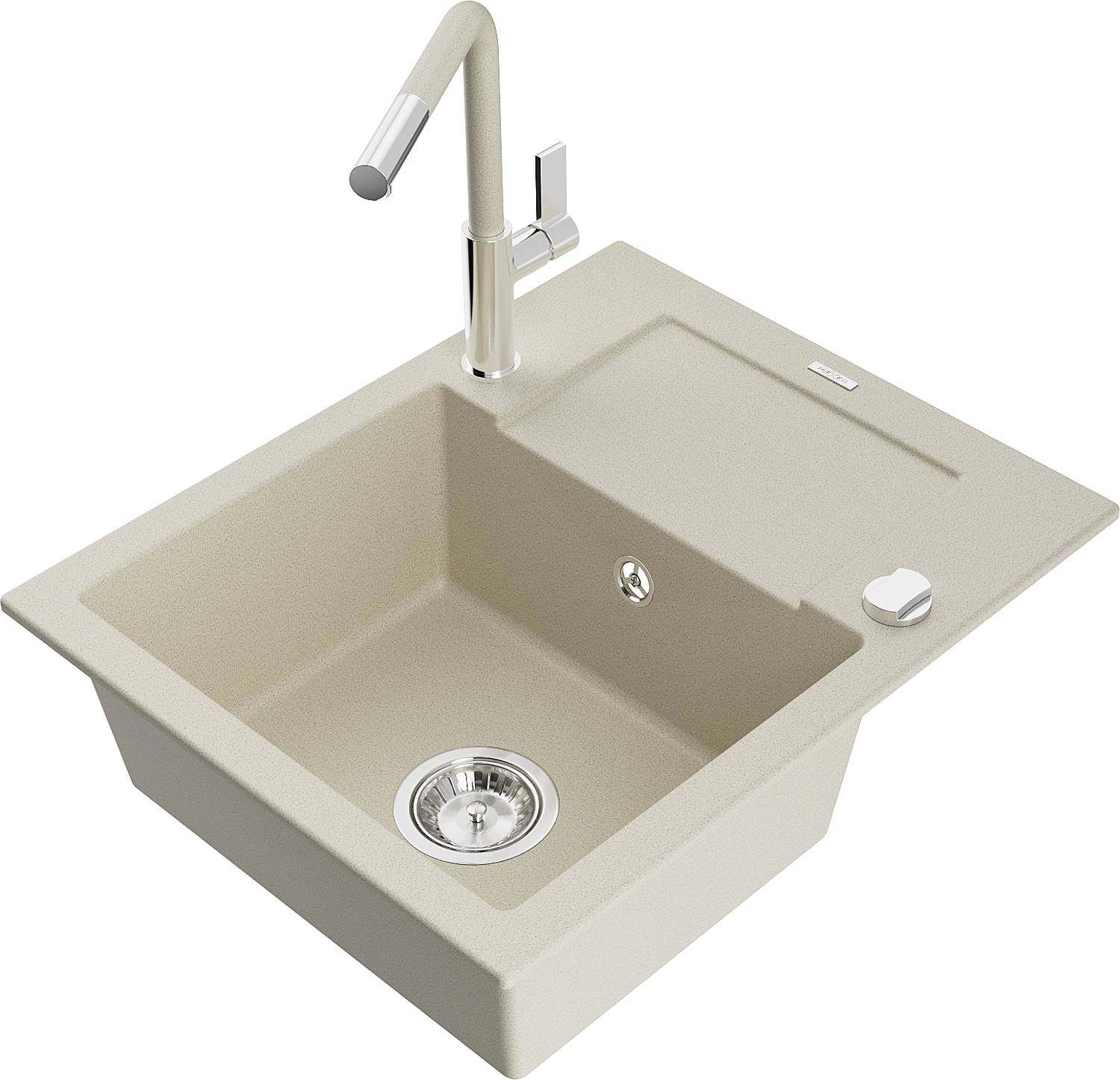 Mexen Enzo Granite Sink 1-Bowl with Drainer and Flora Kitchen Tap, Beige - 6506-69-670401-09