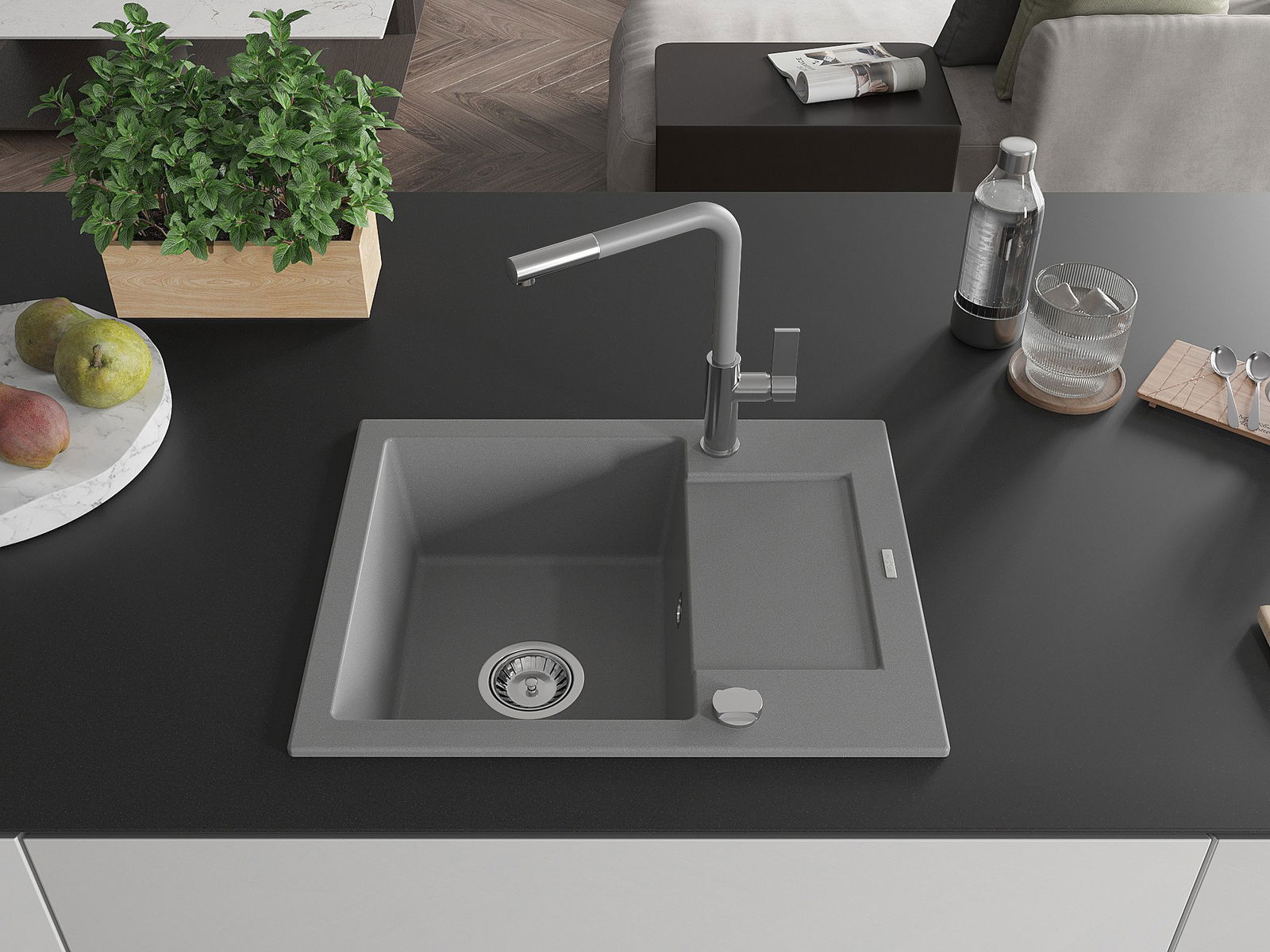 The sink is made of high quality granite. It is an elegant and, above all, practical complement to every kitchen, regardless of its style. High quality and granite durability ensure many years of use.