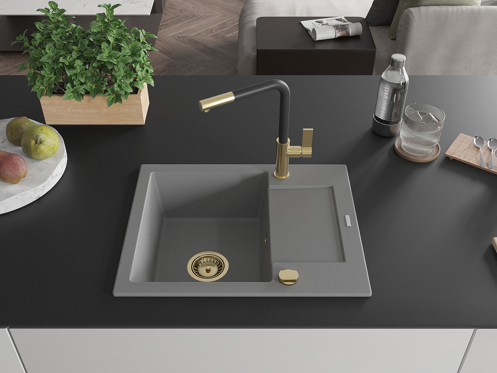 The sink is made of high quality granite. It is an elegant and, above all, practical complement to every kitchen, regardless of its style. High quality and granite durability ensure many years of use.