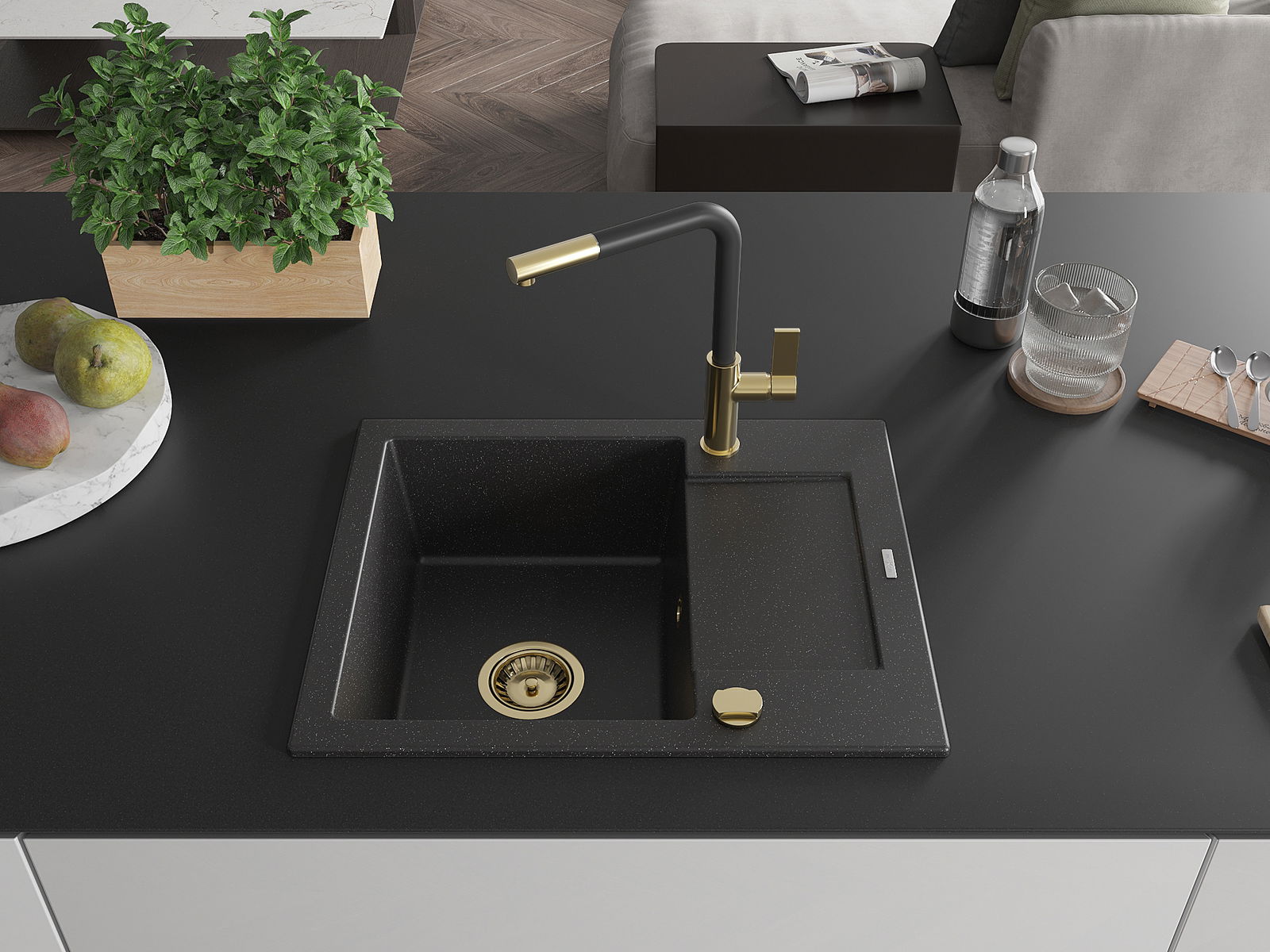 The sink is made of high quality granite. It is an elegant and, above all, practical complement to every kitchen, regardless of its style. High quality and granite durability ensure many years of use.