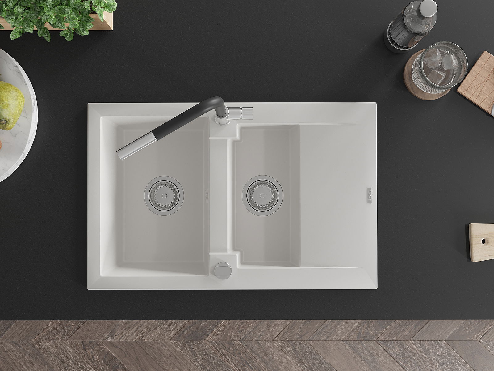 The surface of the sink is resistant to stains and discoloration, thanks to which it is easy to clean and retains its color for a long time. Aesthetic and practically complementing every kitchen.