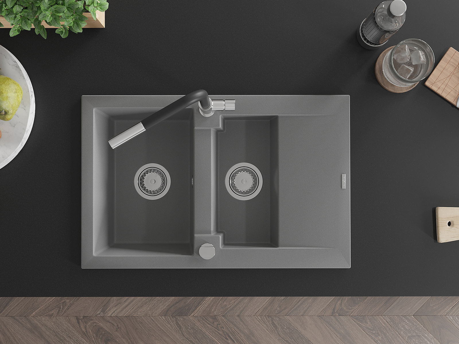 The sink is made of high quality granite. It is an elegant and, above all, practical complement to every kitchen, regardless of its style. High quality and granite durability ensure many years of use.