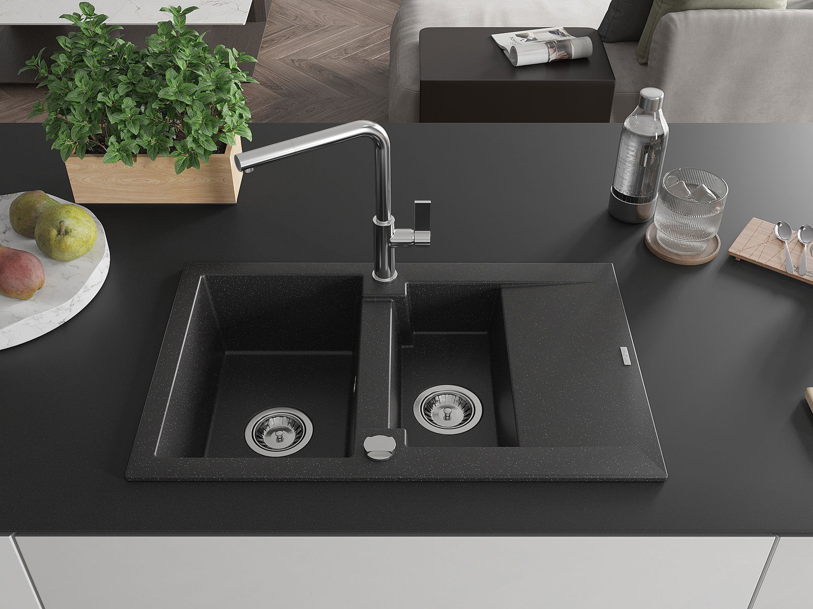 The sink is made of high quality granite. It is an elegant and, above all, practical complement to every kitchen, regardless of its style. High quality and granite durability ensure many years of use.