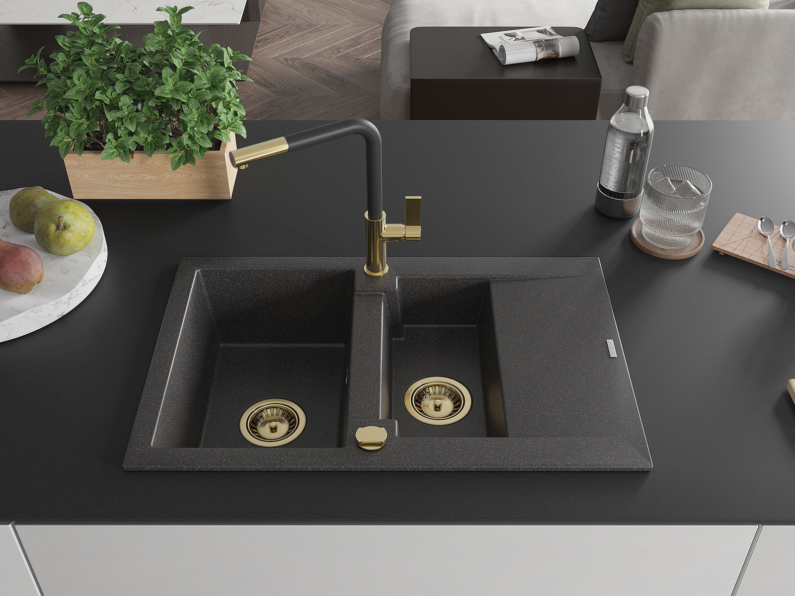 The sink is made of high quality granite. It is an elegant and, above all, practical complement to every kitchen, regardless of its style. High quality and granite durability ensure many years of use.