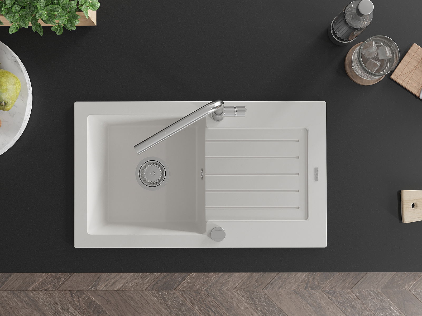 The surface of the sink is resistant to stains and discoloration, thanks to which it is easy to clean and retains its color for a long time. Aesthetic and practically complementing every kitchen.