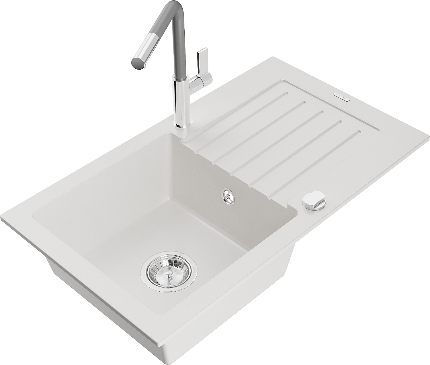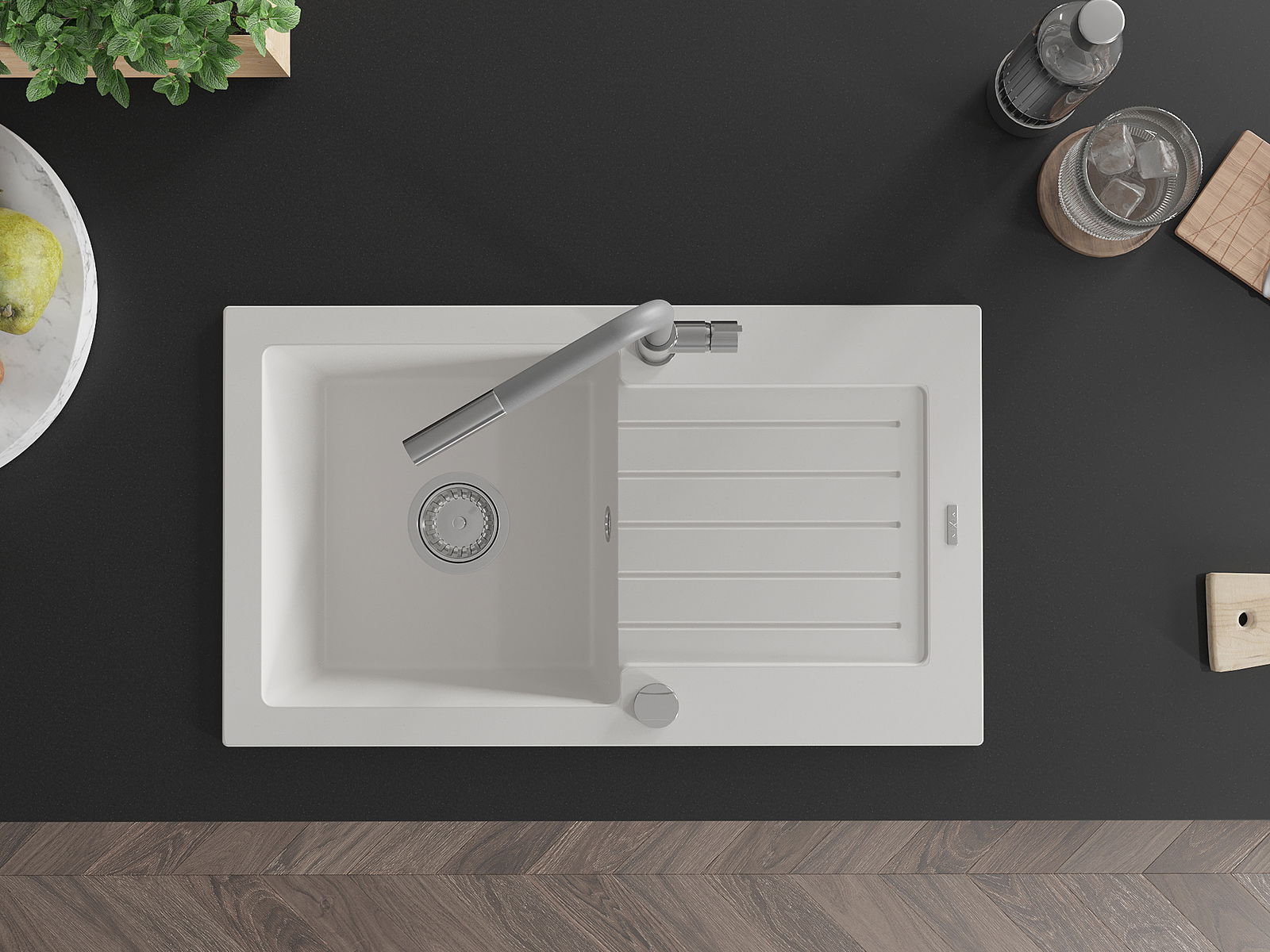 The surface of the sink is resistant to stains and discoloration, thanks to which it is easy to clean and retains its color for a long time. Aesthetic and practically complementing every kitchen.