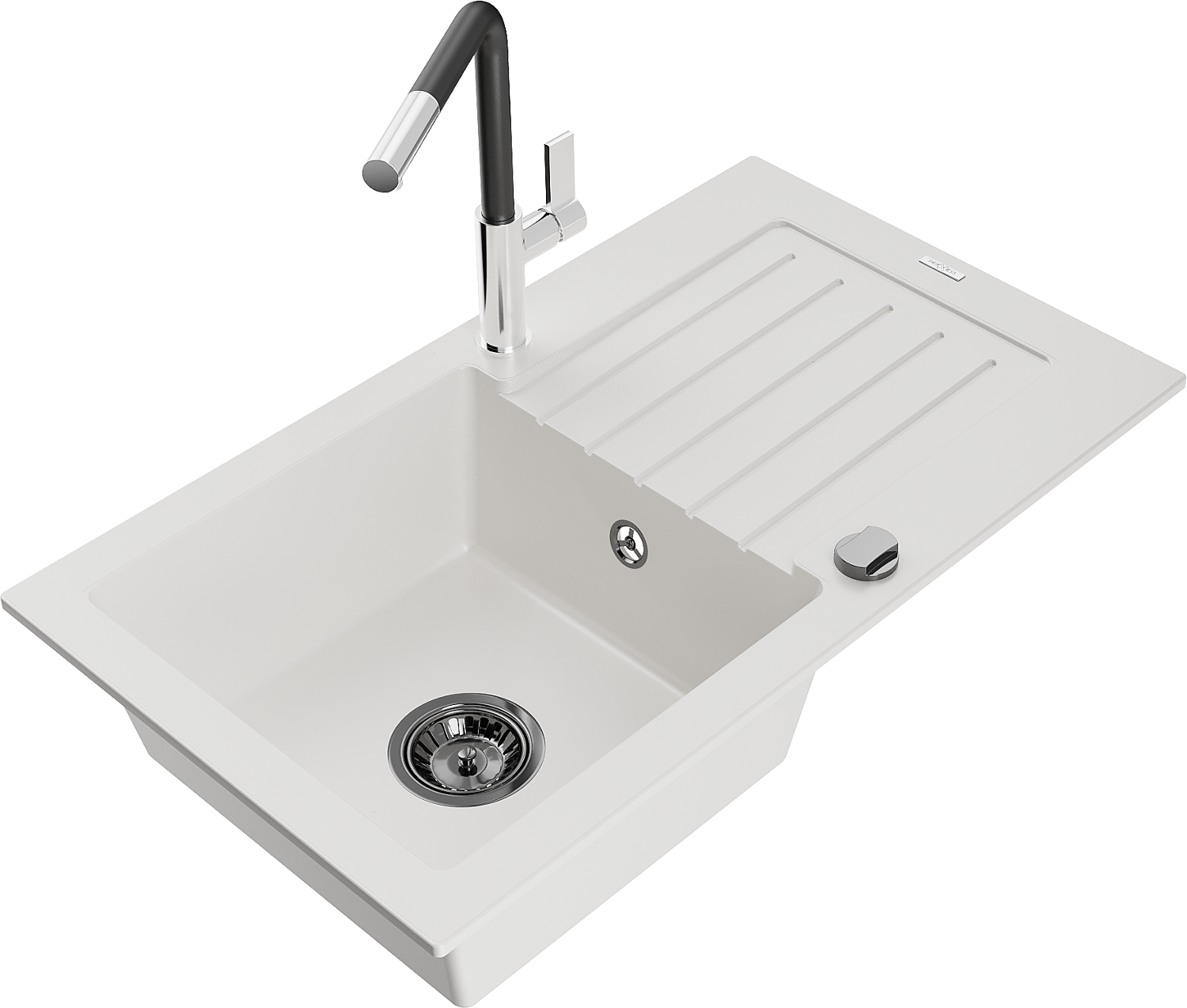 Mexen Pablo Granite Sink 1-Bowl with Drainer and Flora Kitchen Mixer Tap, White - 6510-20-670401-07-B