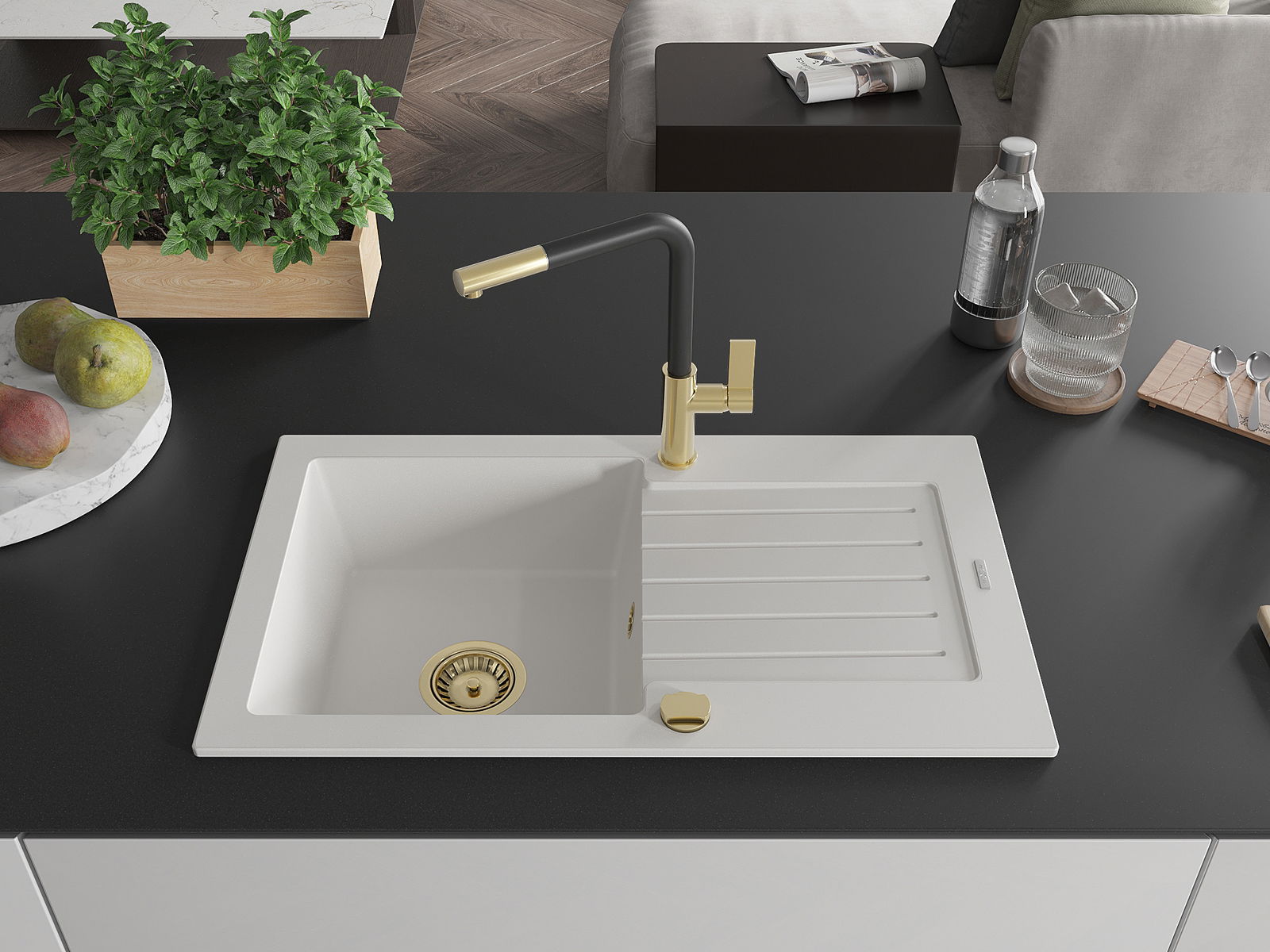 The surface of the sink is resistant to stains and discoloration, thanks to which it is easy to clean and retains its color for a long time. Aesthetic and practically complementing every kitchen.