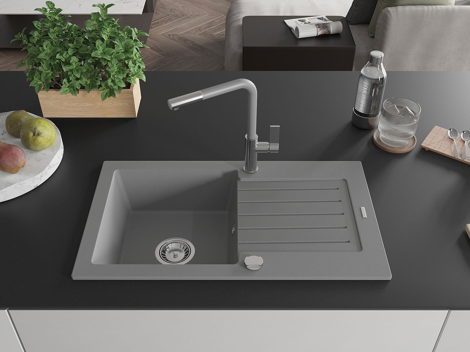 The sink is made of high quality granite. It is an elegant and, above all, practical complement to every kitchen, regardless of its style. High quality and granite durability ensure many years of use.