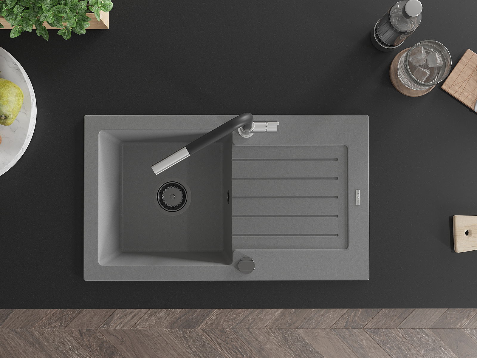 The sink is made of high quality granite. It is an elegant and, above all, practical complement to every kitchen, regardless of its style. High quality and granite durability ensure many years of use.
