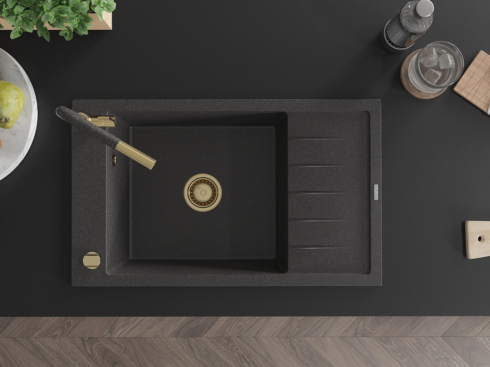 The sink is made of high quality granite. It is an elegant and, above all, practical complement to every kitchen, regardless of its style. High quality and granite durability ensure many years of use.