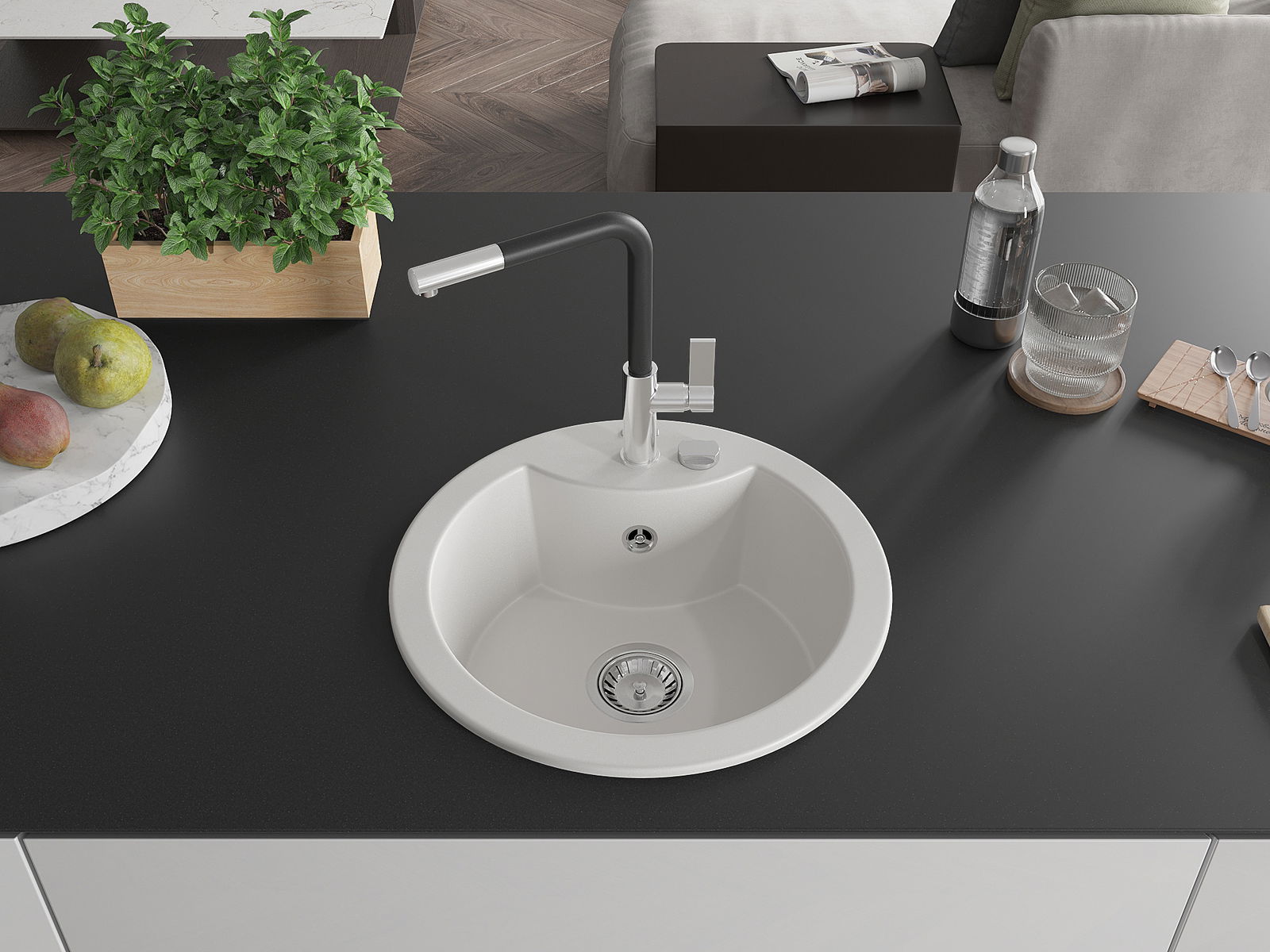 The surface of the sink is resistant to stains and discoloration, thanks to which it is easy to clean and retains its color for a long time. Aesthetic and practically complementing every kitchen.