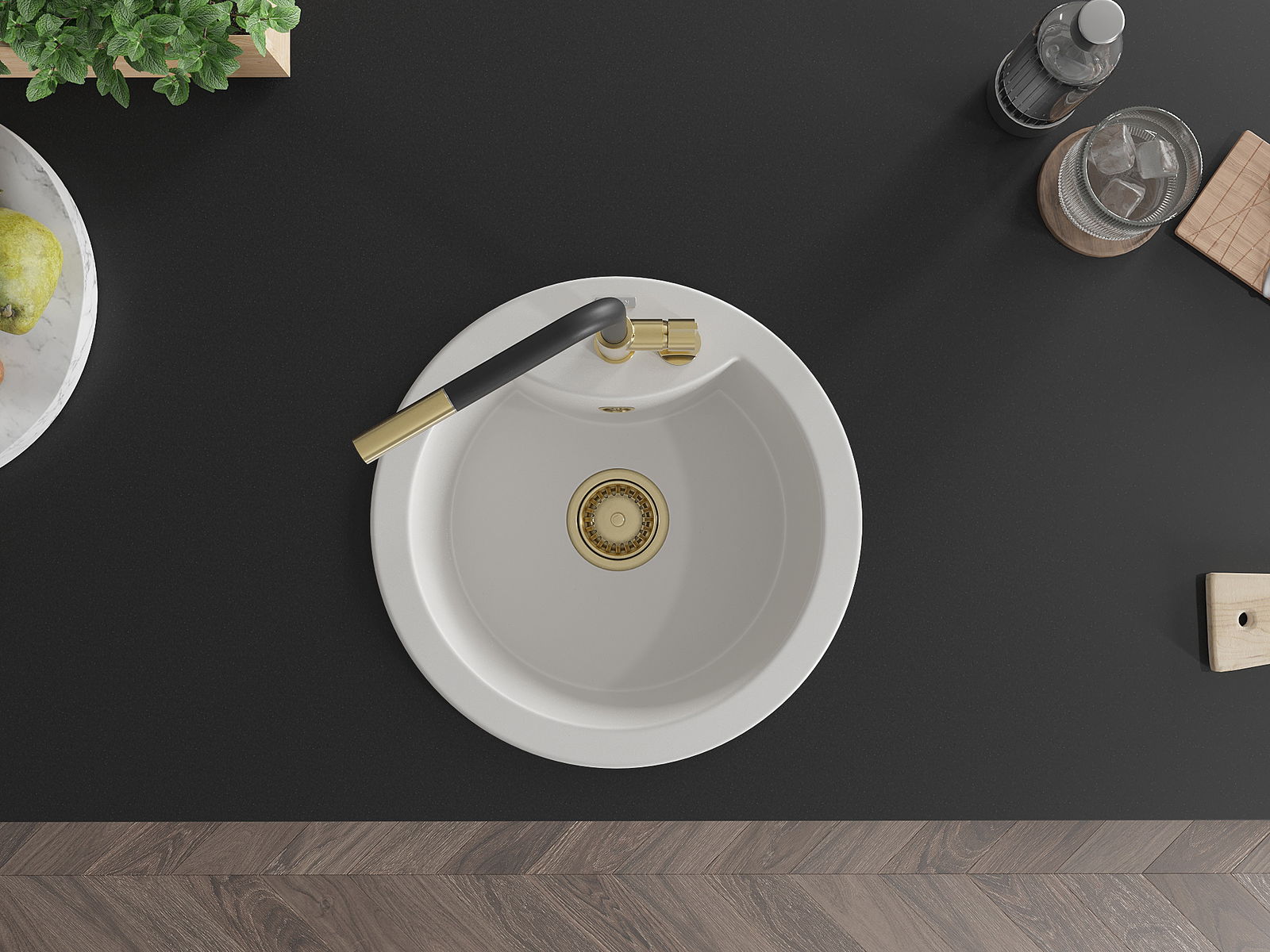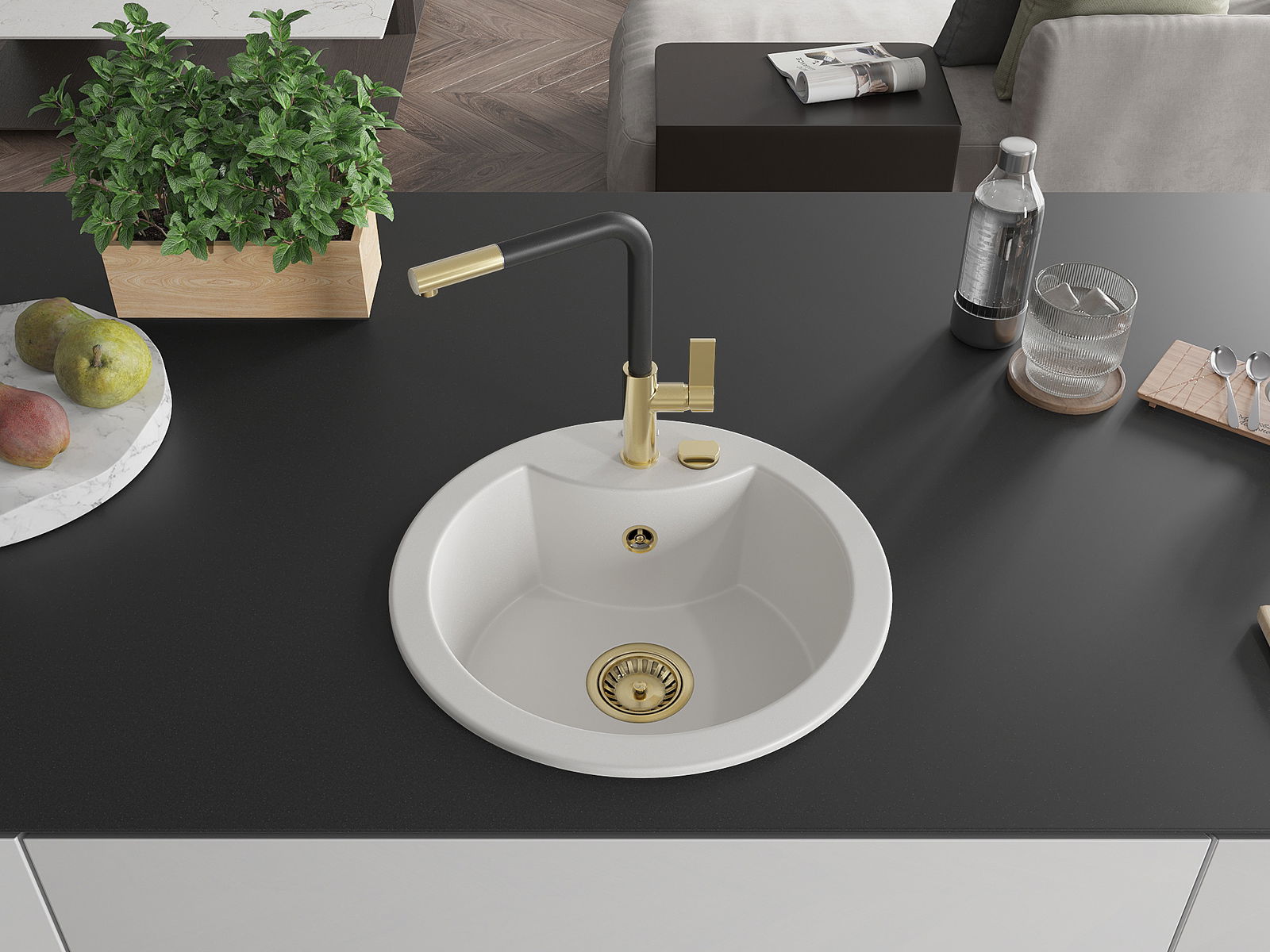 The sink is made of high quality granite. It is an elegant and, above all, practical complement to every kitchen, regardless of its style. High quality and granite durability ensure many years of use.