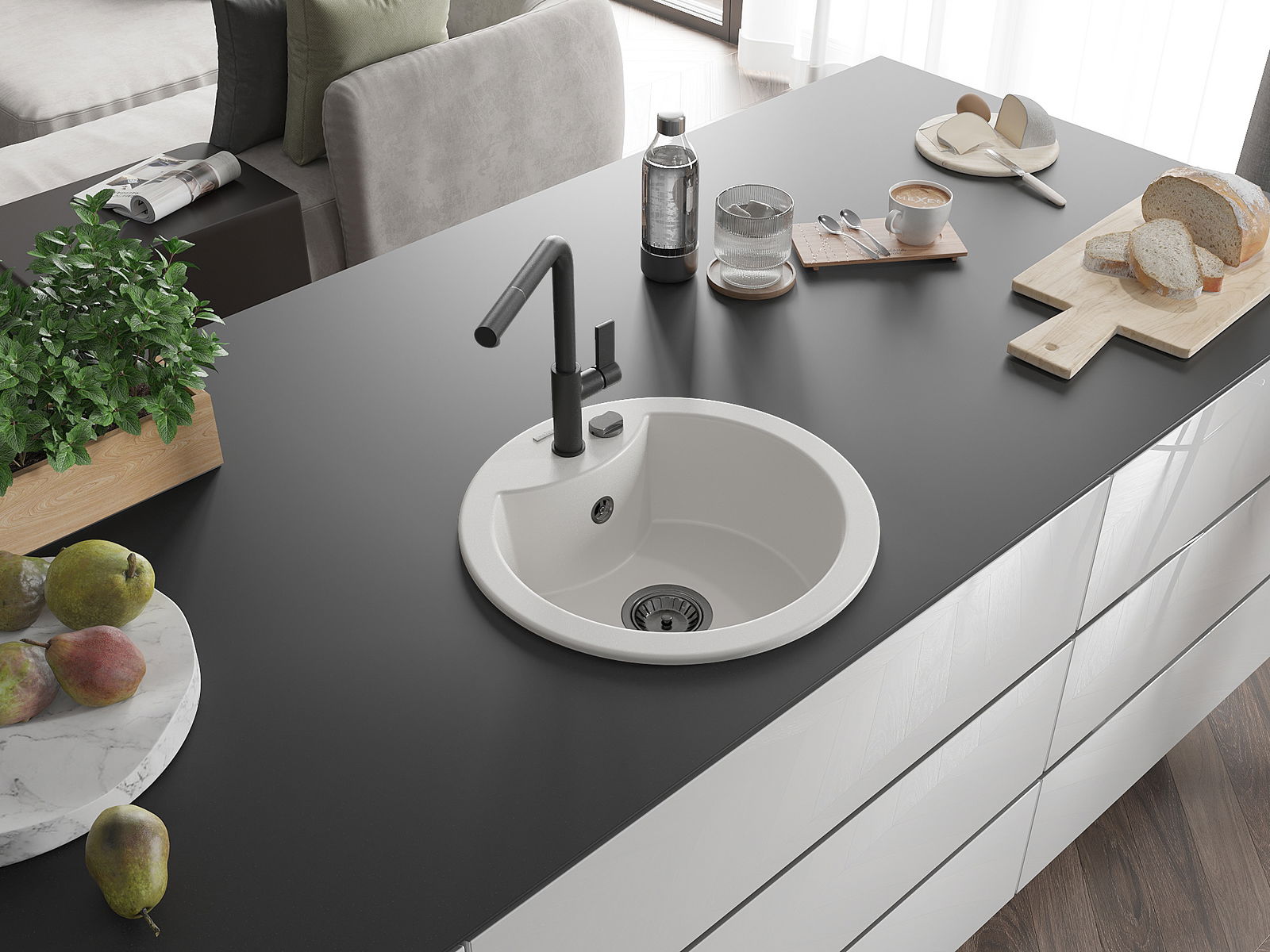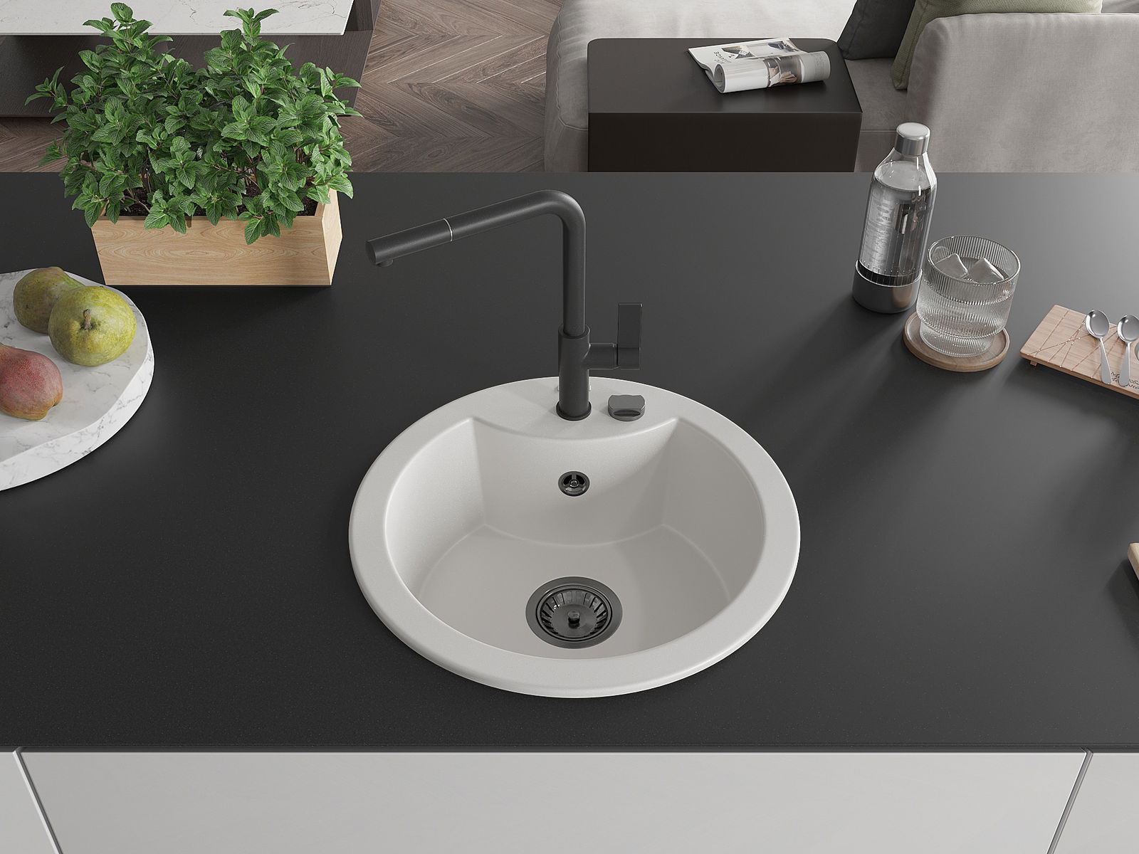 The sink is made of high quality granite. It is an elegant and, above all, practical complement to every kitchen, regardless of its style. High quality and granite durability ensure many years of use.