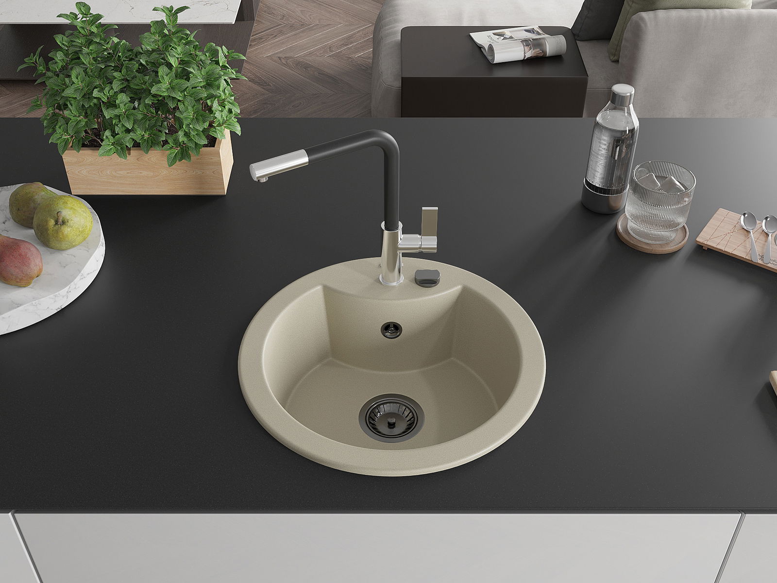 The sink is made of high quality granite. It is an elegant and, above all, practical complement to every kitchen, regardless of its style. High quality and granite durability ensure many years of use.