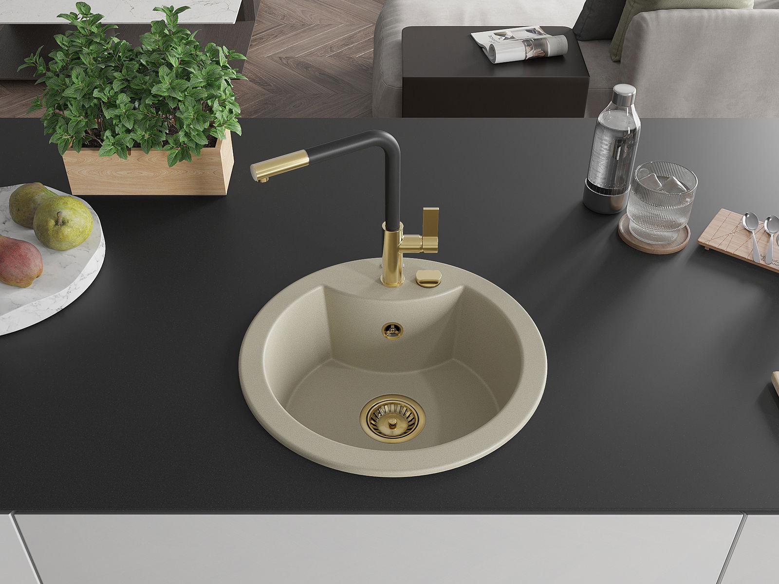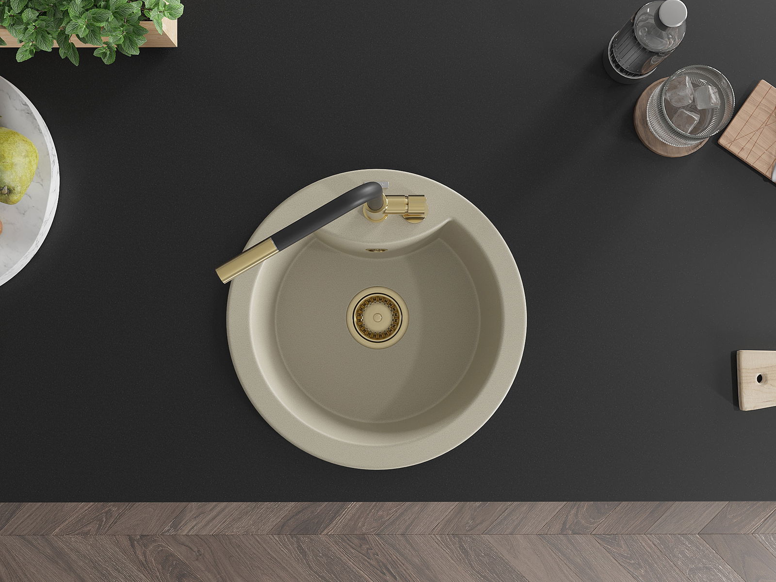 The sink is made of high quality granite. It is an elegant and, above all, practical complement to every kitchen, regardless of its style. High quality and granite durability ensure many years of use.