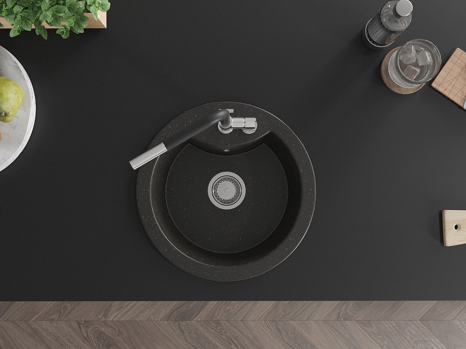 The sink is made of high quality granite. It is an elegant and, above all, practical complement to every kitchen, regardless of its style. High quality and granite durability ensure many years of use.