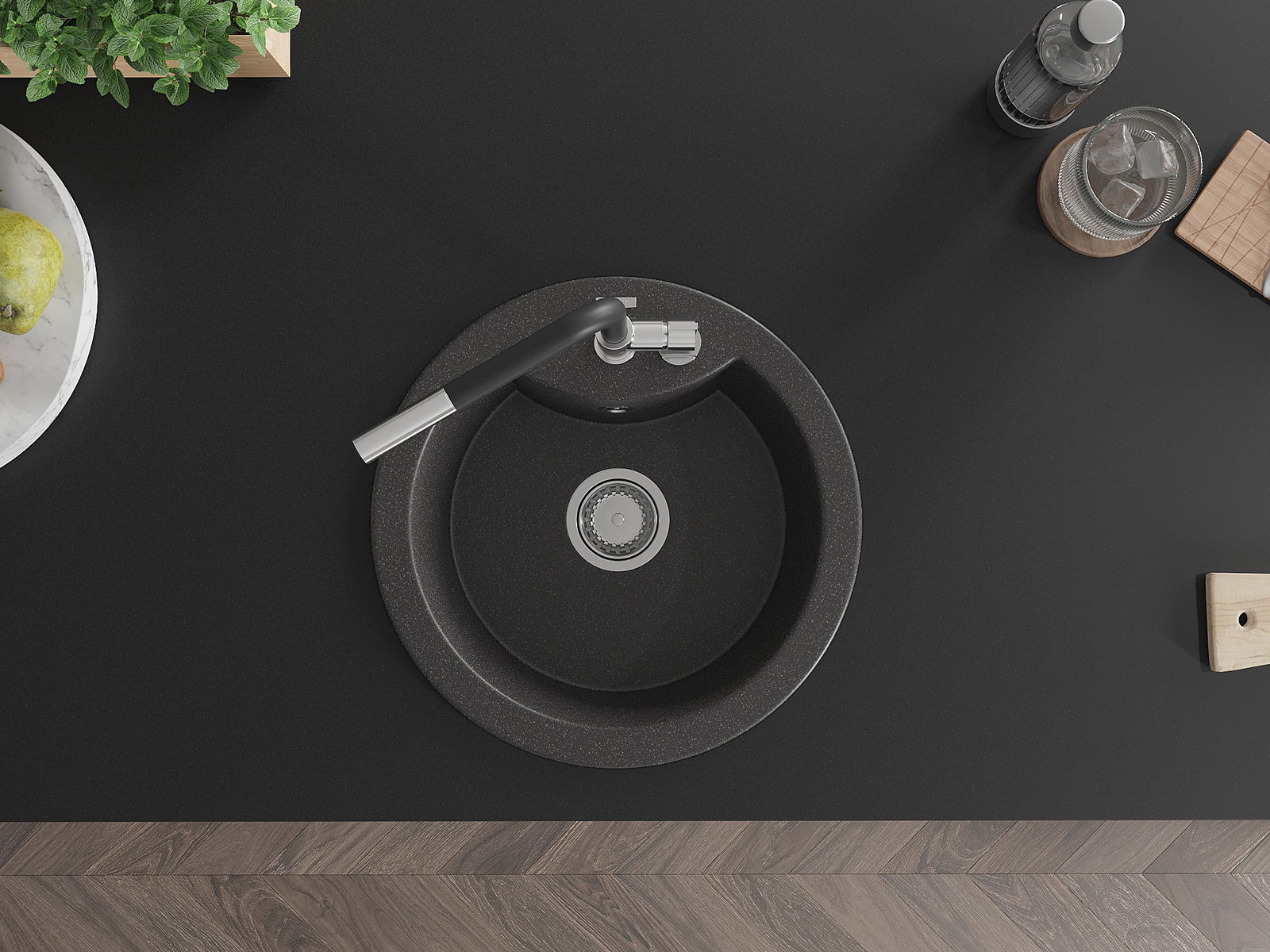 The sink is made of high quality granite. It is an elegant and, above all, practical complement to every kitchen, regardless of its style. High quality and granite durability ensure many years of use.