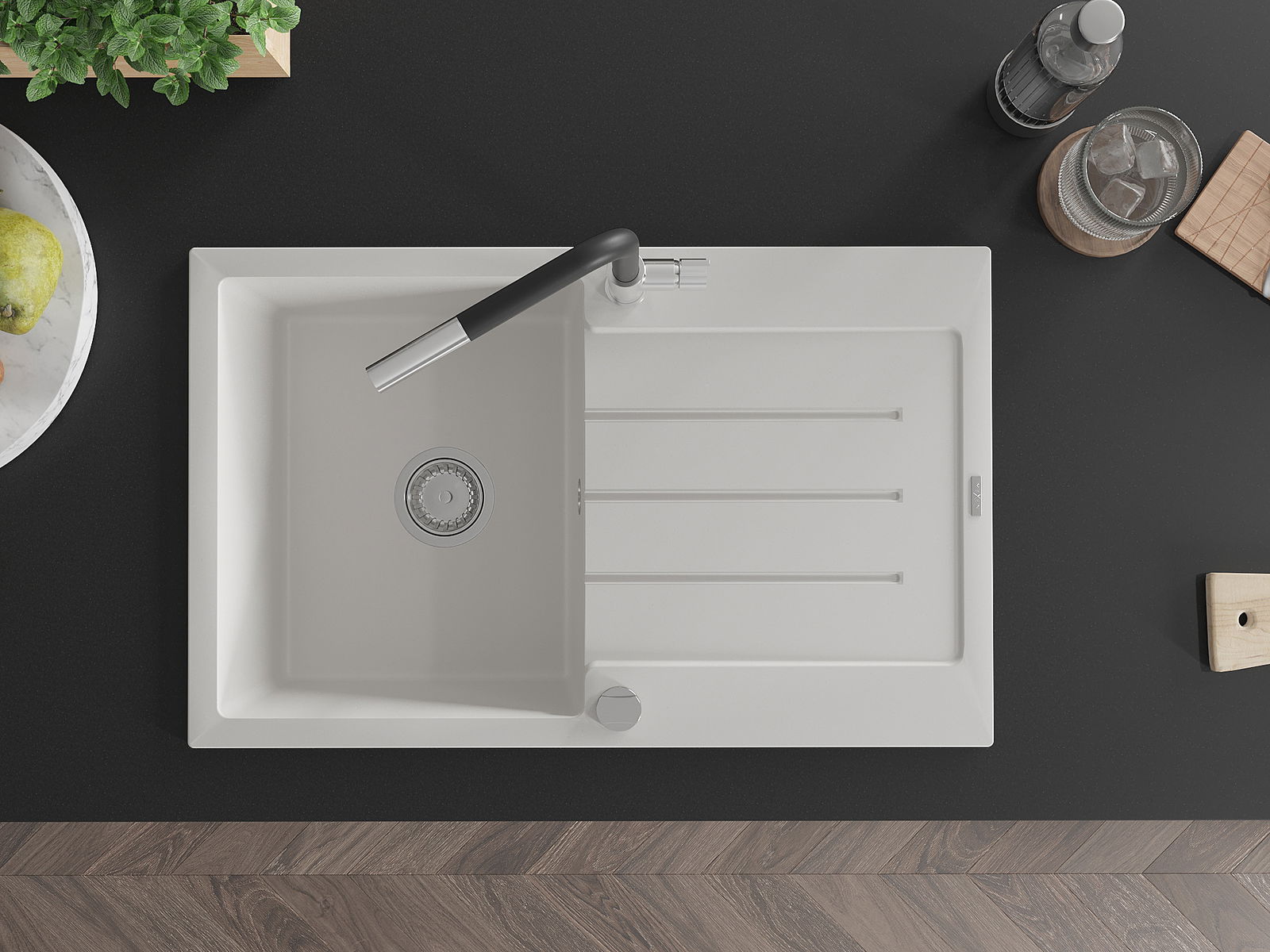 The sink is made of high quality granite. It is an elegant and, above all, practical complement to every kitchen, regardless of its style. High quality and granite durability ensure many years of use.