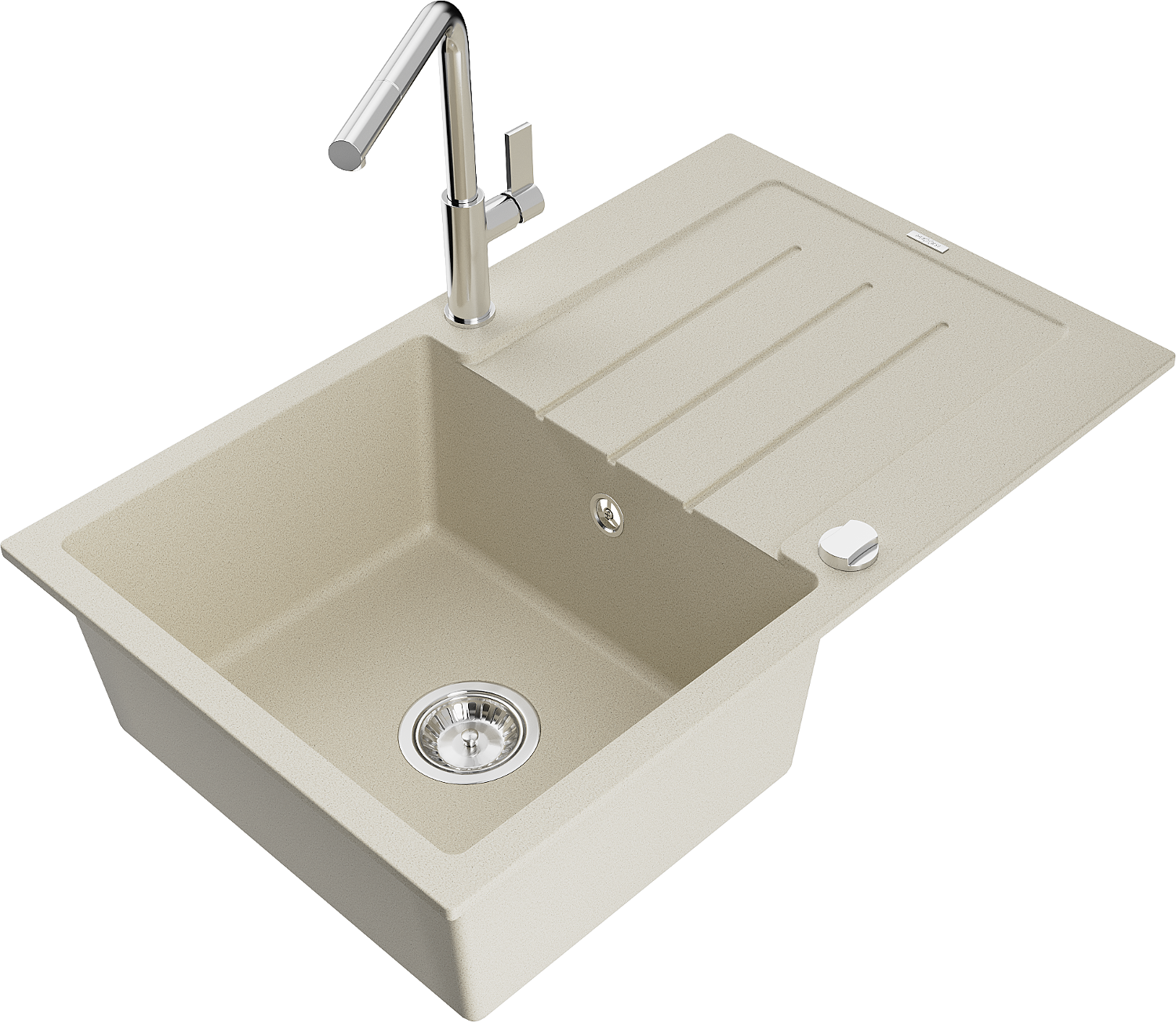 Mexen Bruno granite sink 1-bowl with drainer and Flora kitchen tap, beige - 6513-69-670401-00