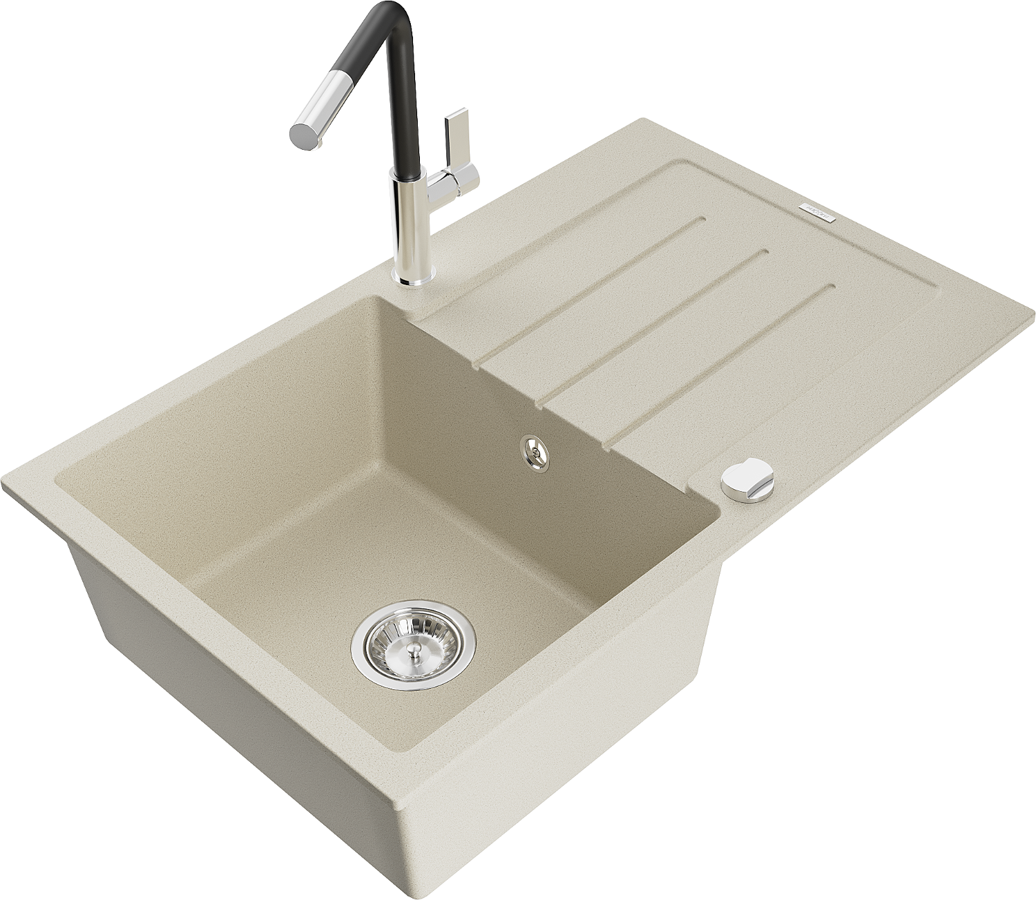 The sink is made of high quality granite. It is an elegant and, above all, practical complement to every kitchen, regardless of its style. High quality and granite durability ensure many years of use.