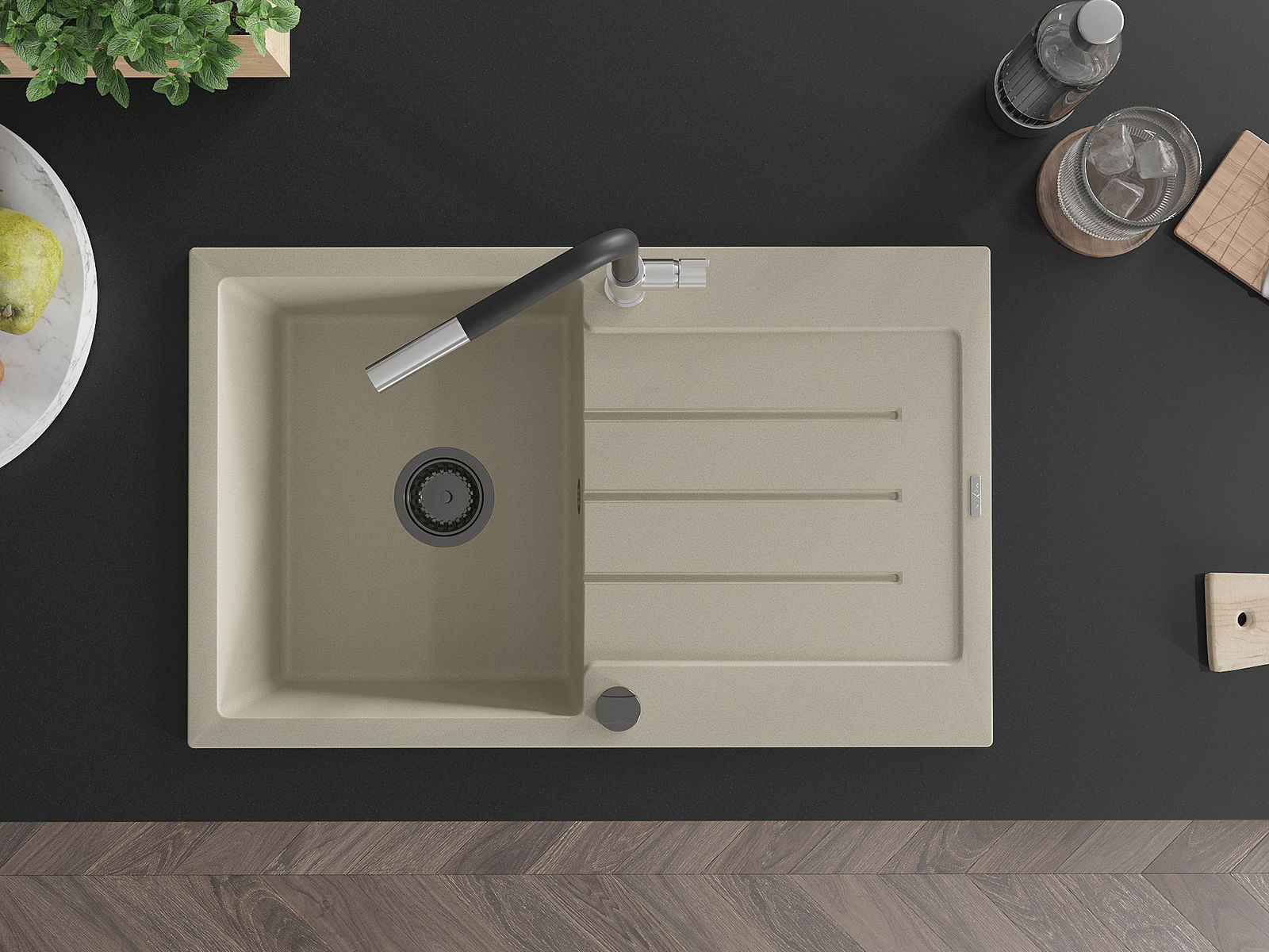 The sink is made of high quality granite. It is an elegant and, above all, practical complement to every kitchen, regardless of its style. High quality and granite durability ensure many years of use.