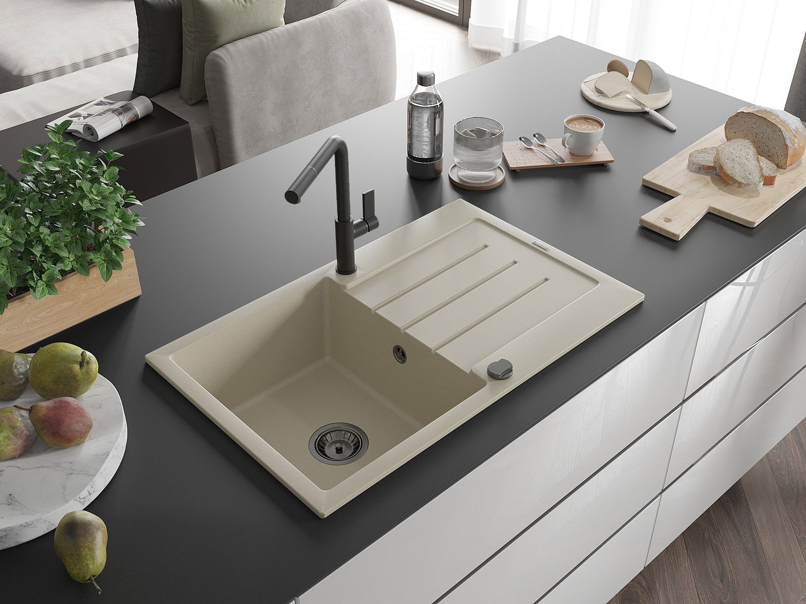 The sink is made of high quality granite. It is an elegant and, above all, practical complement to every kitchen, regardless of its style. High quality and granite durability ensure many years of use.
