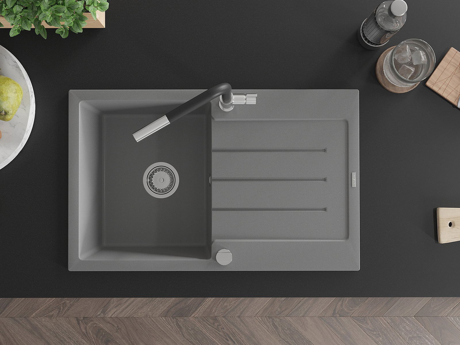 The sink is made of high quality granite. It is an elegant and, above all, practical complement to every kitchen, regardless of its style. High quality and granite durability ensure many years of use.