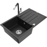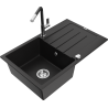 Mexen Bruno 1-bowl granite kitchen sink with drainer and Flora kitchen tap, grey - 6513-71-670401-07
