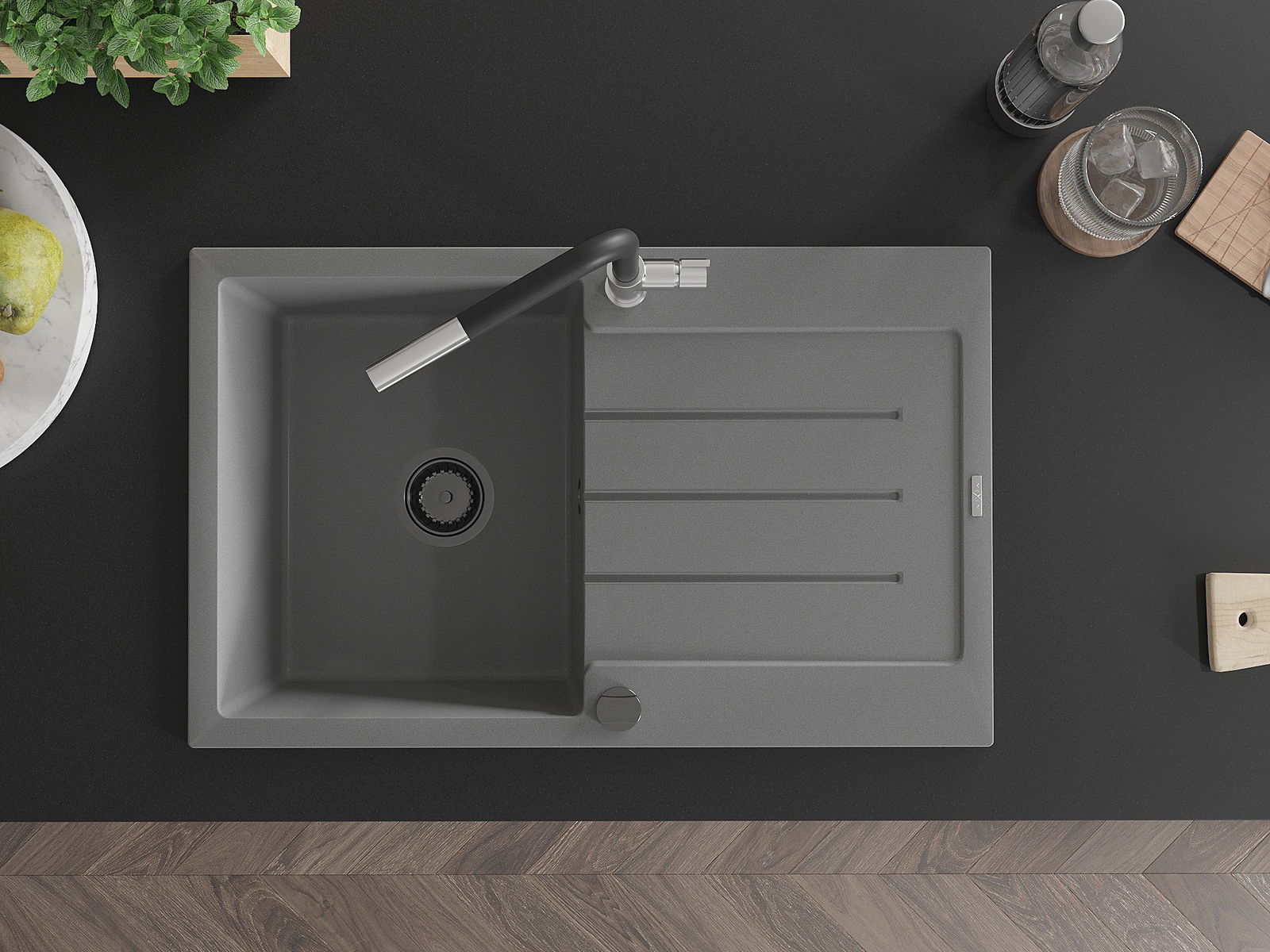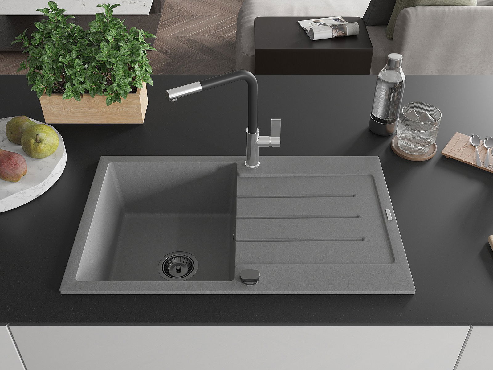 The sink is made of high quality granite. It is an elegant and, above all, practical complement to every kitchen, regardless of its style. High quality and granite durability ensure many years of use.