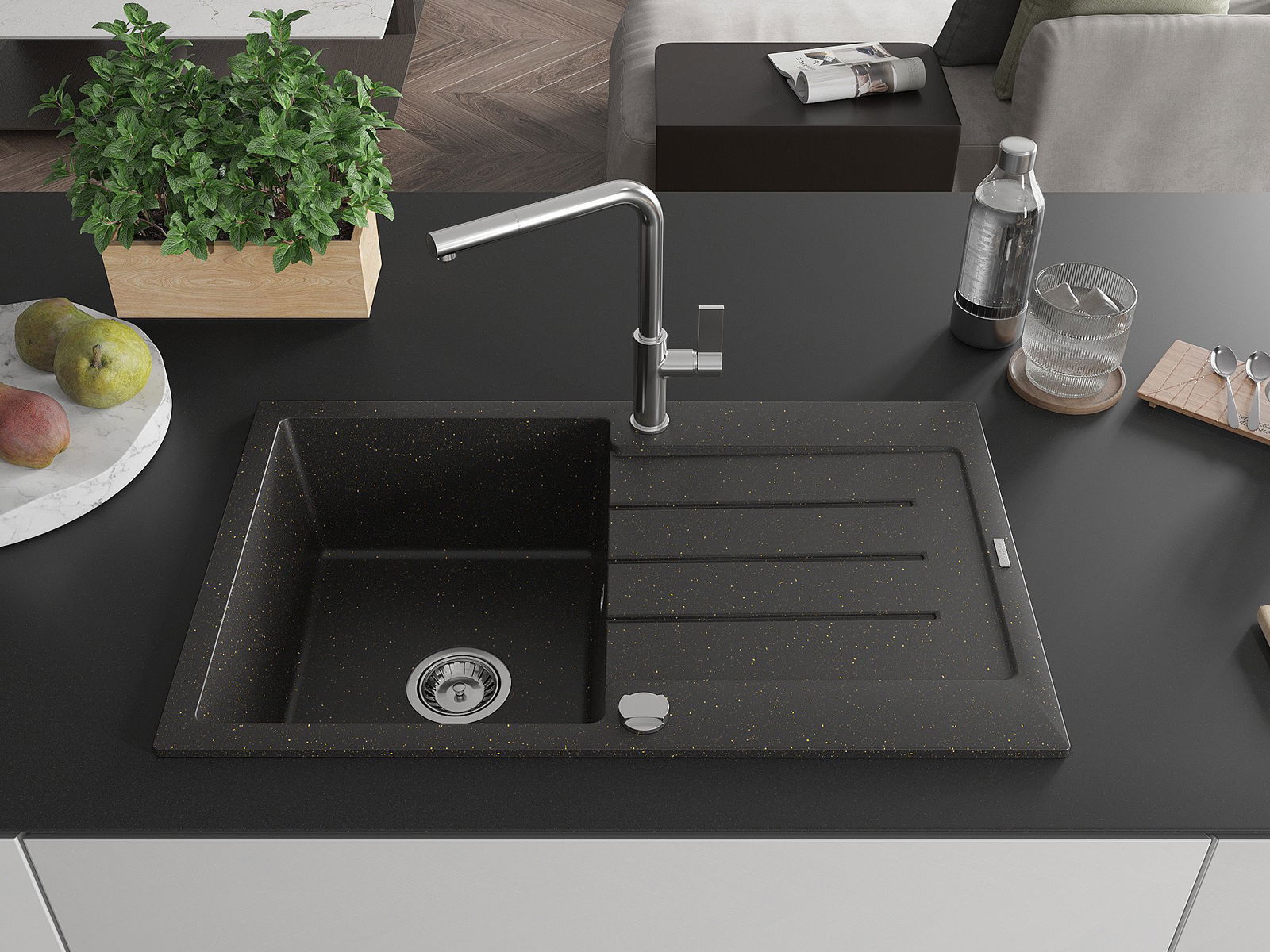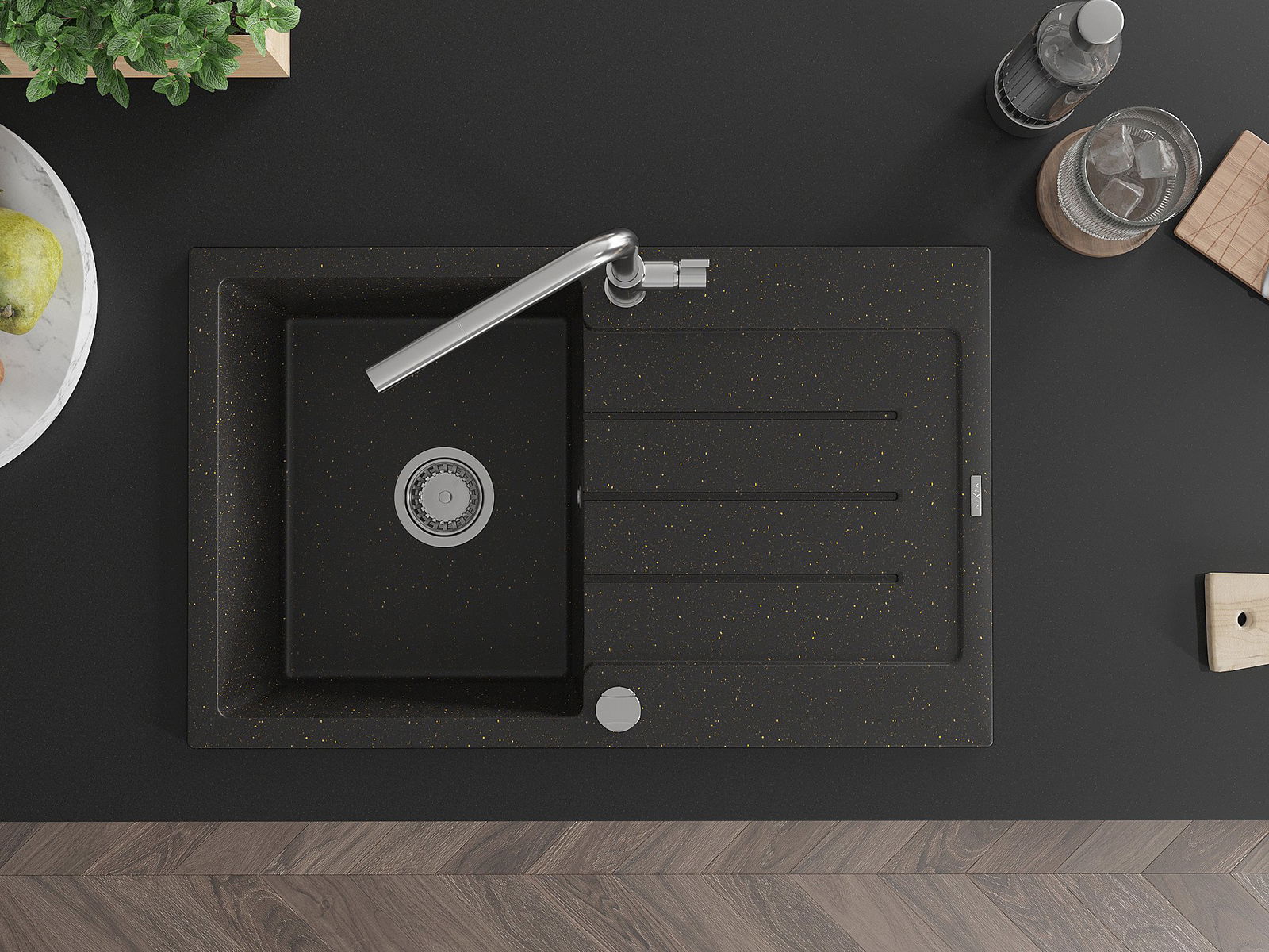 The sink is made of high quality granite. It is an elegant and, above all, practical complement to every kitchen, regardless of its style. High quality and granite durability ensure many years of use.