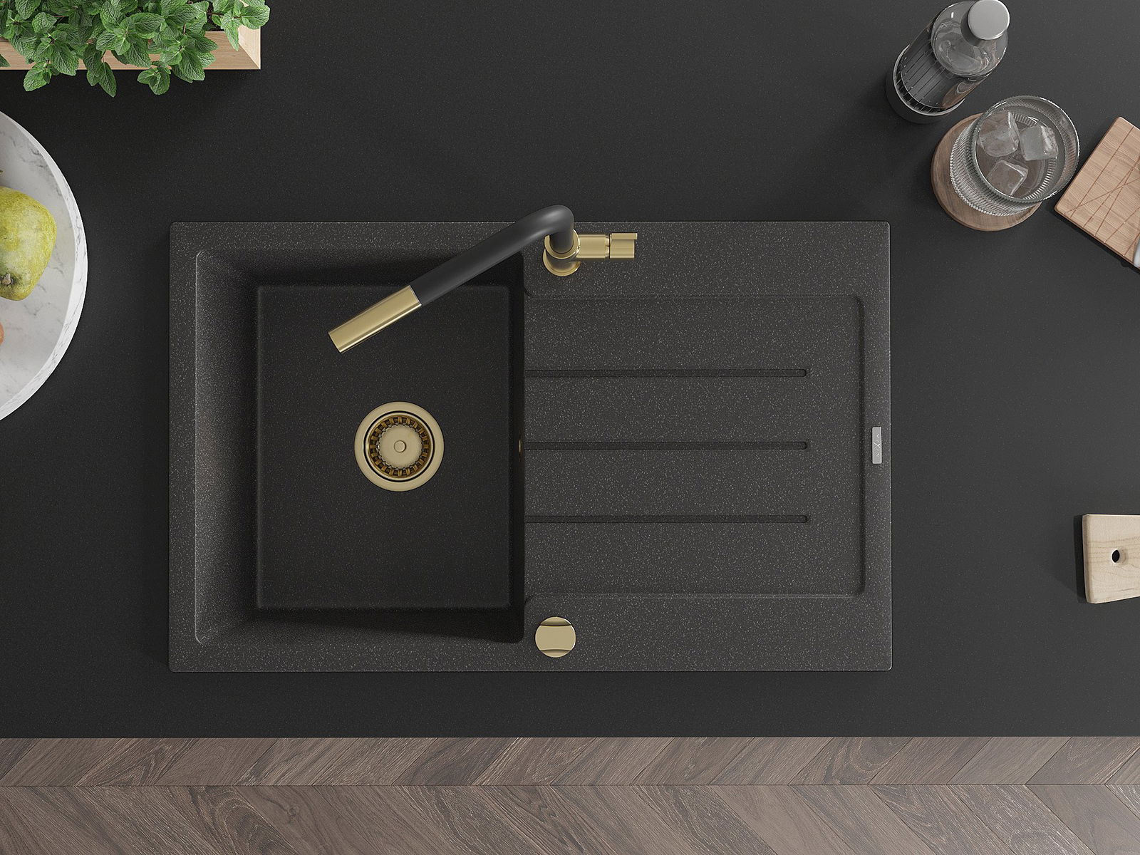 The sink is made of high quality granite. It is an elegant and, above all, practical complement to every kitchen, regardless of its style. High quality and granite durability ensure many years of use.