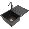Mexen Bruno granite sink single-bowl with drainer and Flora kitchen tap, black - 6513-77-670401-57-G