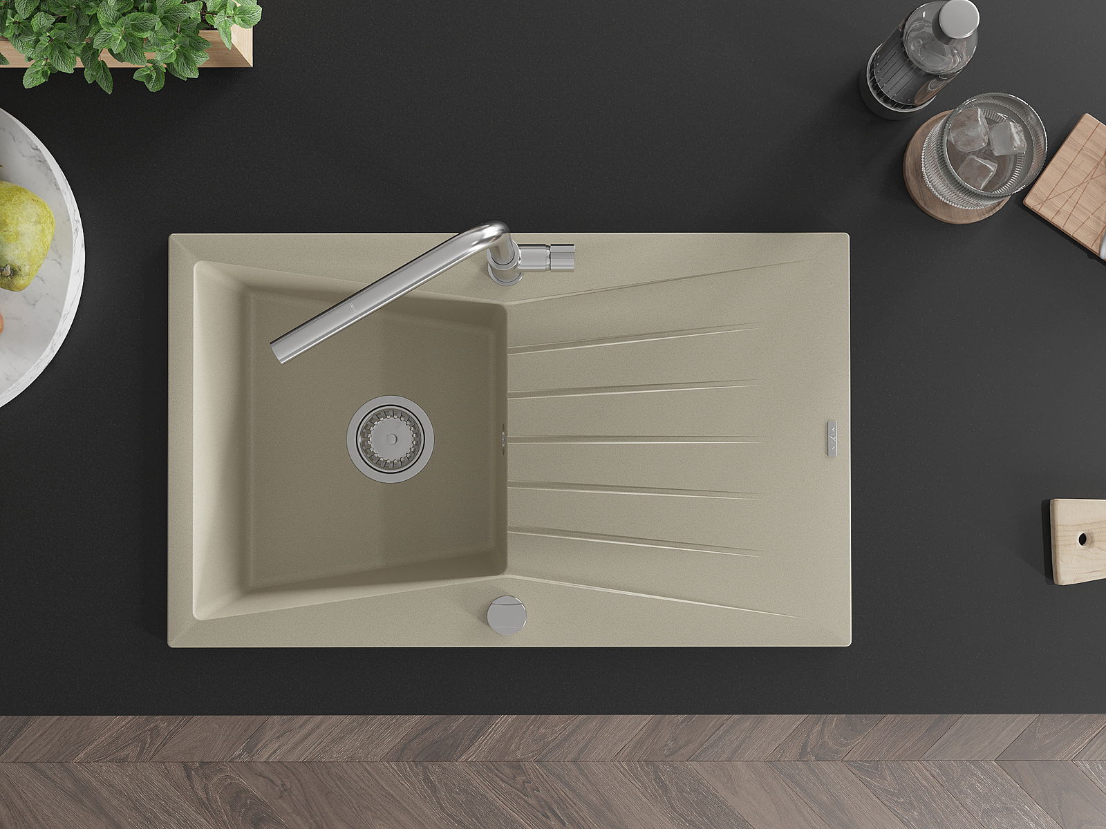 The sink is made of high quality granite. It is an elegant and, above all, practical complement to every kitchen, regardless of its style. High quality and granite durability ensure many years of use.