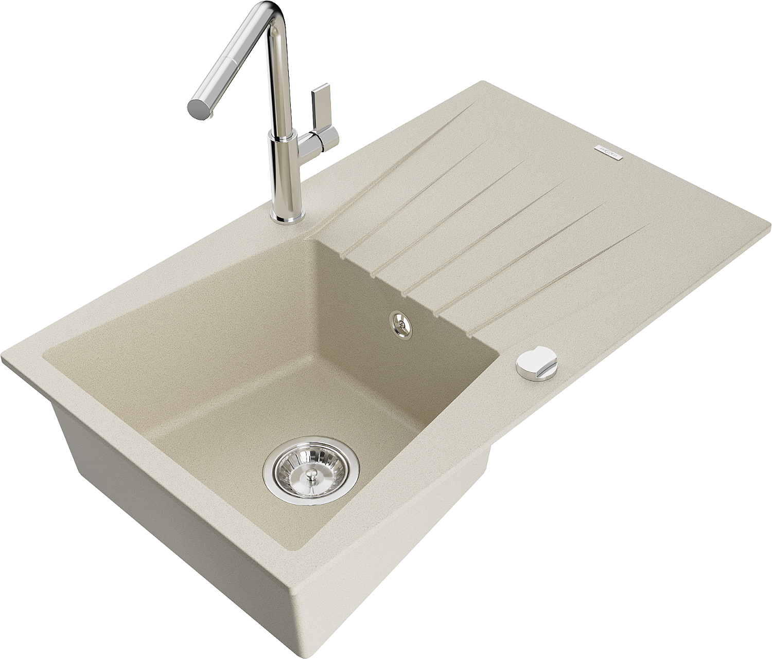 The surface of the sink is resistant to stains and discoloration, thanks to which it is easy to clean and retains its color for a long time. Aesthetic and practically complementing every kitchen.