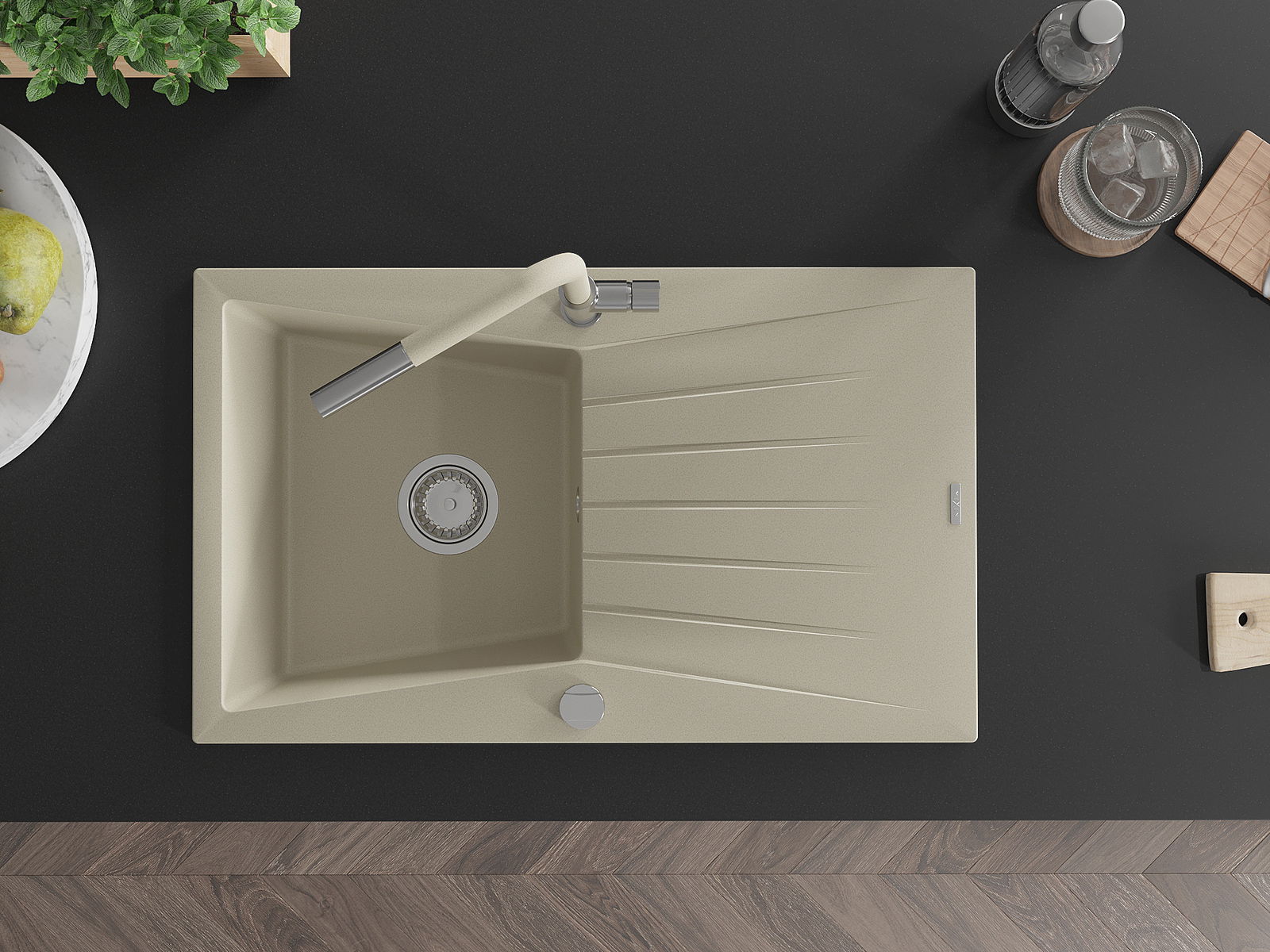 The sink is made of high quality granite. It is an elegant and, above all, practical complement to every kitchen, regardless of its style. High quality and granite durability ensure many years of use.
