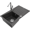 Mexen Cesar granite sink, single-bowl with drainer and Flora kitchen tap, grey - 6514-71-670401-00