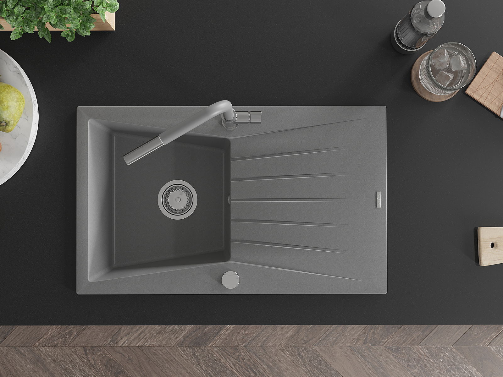 The sink is made of high quality granite. It is an elegant and, above all, practical complement to every kitchen, regardless of its style. High quality and granite durability ensure many years of use.