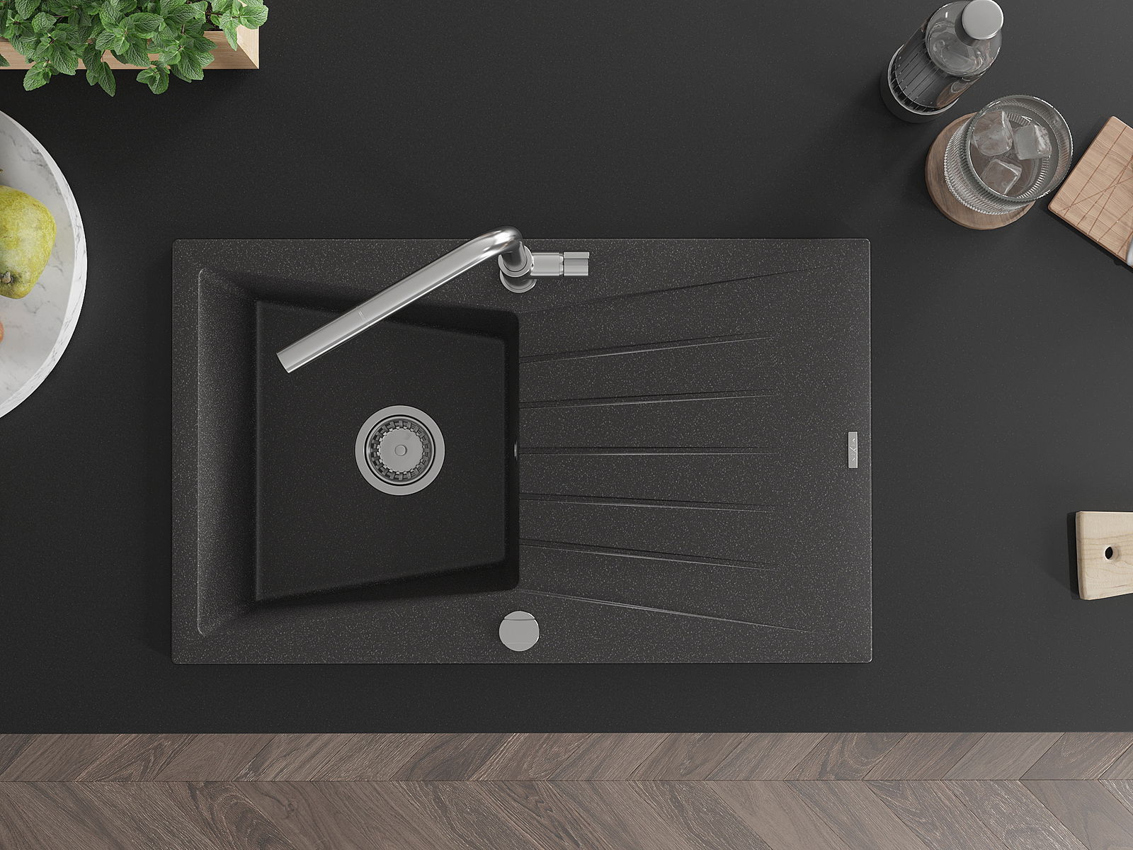 The sink is made of high quality granite. It is an elegant and, above all, practical complement to every kitchen, regardless of its style. High quality and granite durability ensure many years of use.