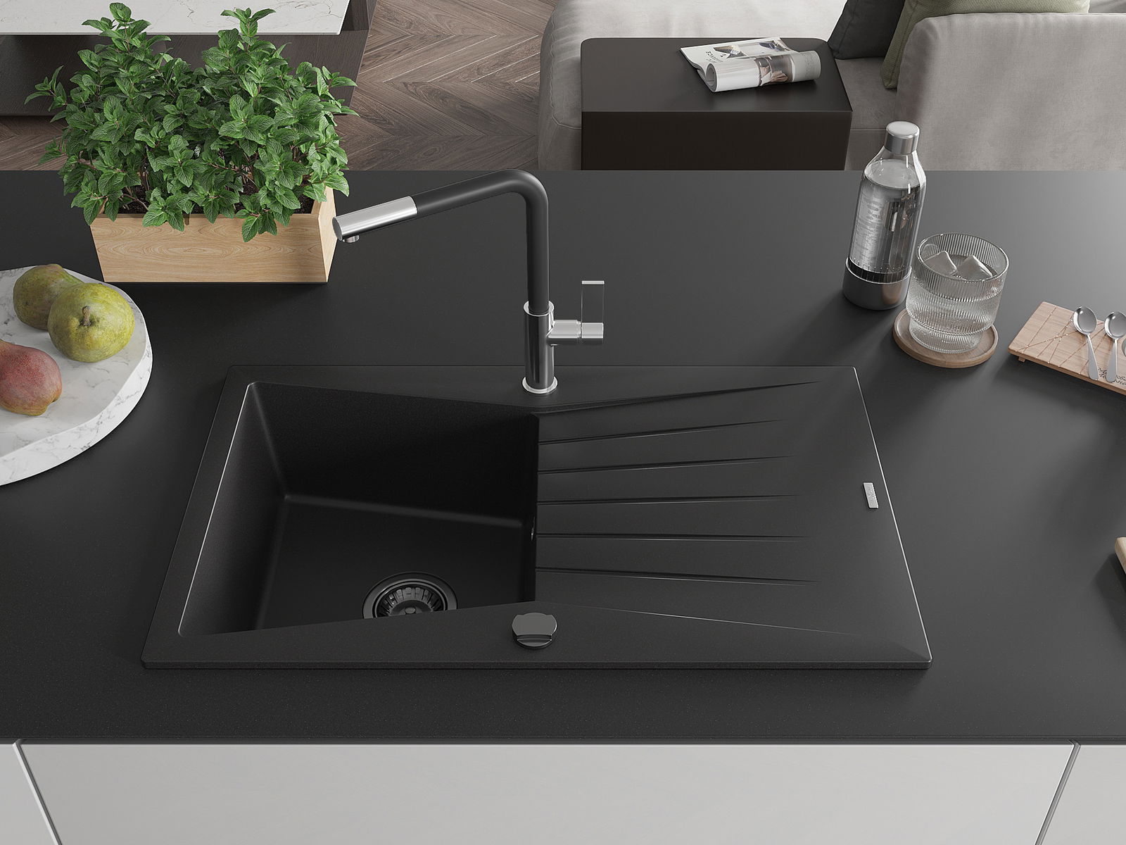 The sink is made of high quality granite. It is an elegant and, above all, practical complement to every kitchen, regardless of its style. High quality and granite durability ensure many years of use.