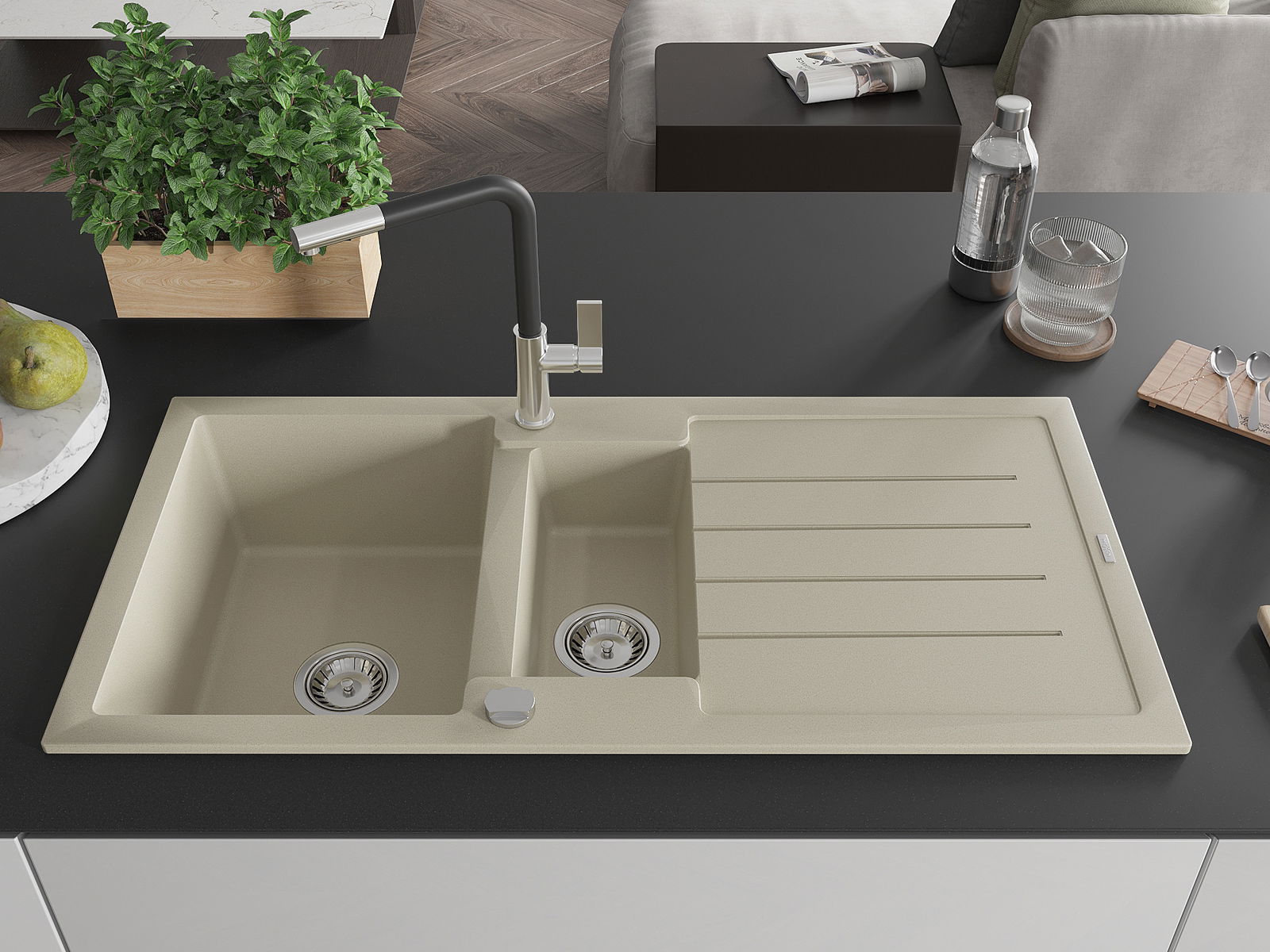 The sink is made of high quality granite. It is an elegant and, above all, practical complement to every kitchen, regardless of its style. High quality and granite durability ensure many years of use.