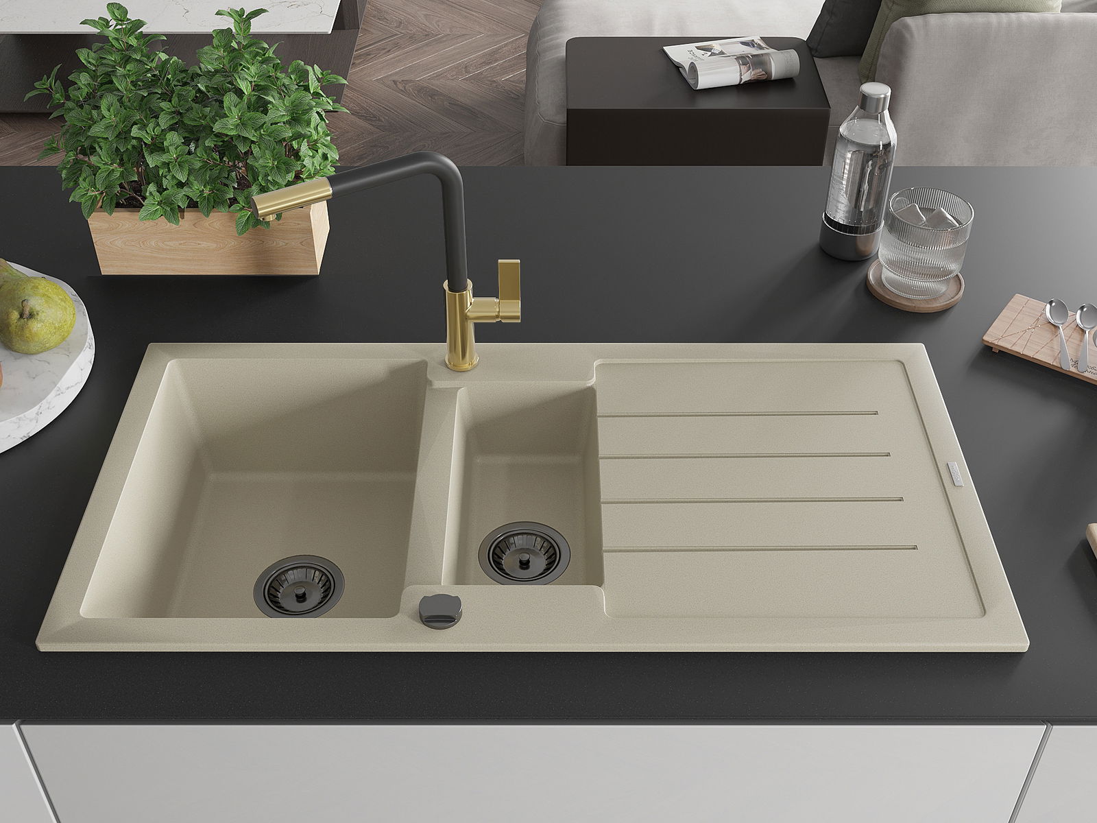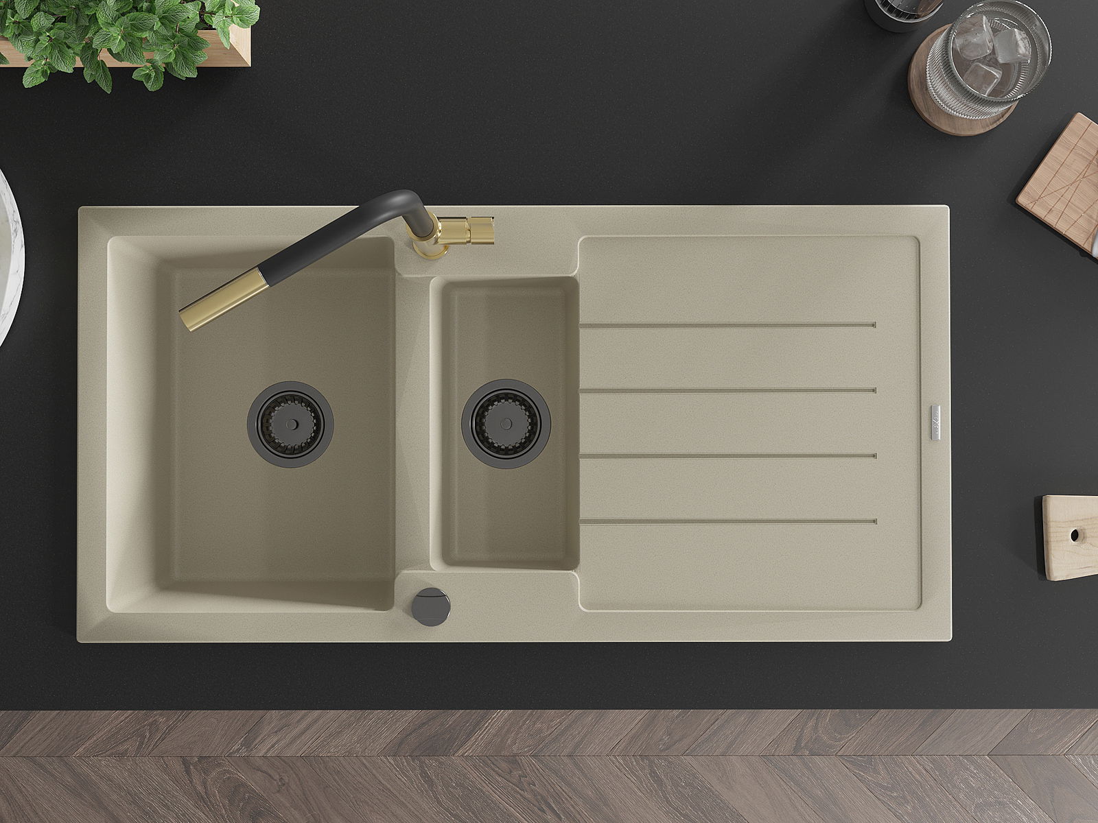 The sink is made of high quality granite. It is an elegant and, above all, practical complement to every kitchen, regardless of its style. High quality and granite durability ensure many years of use.