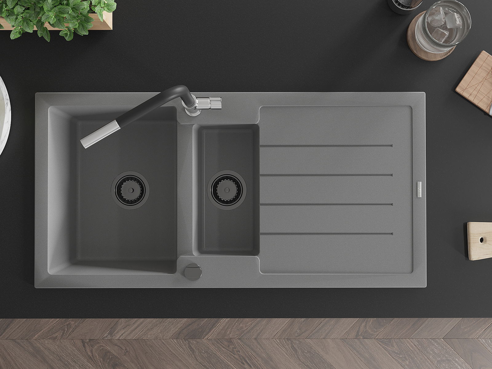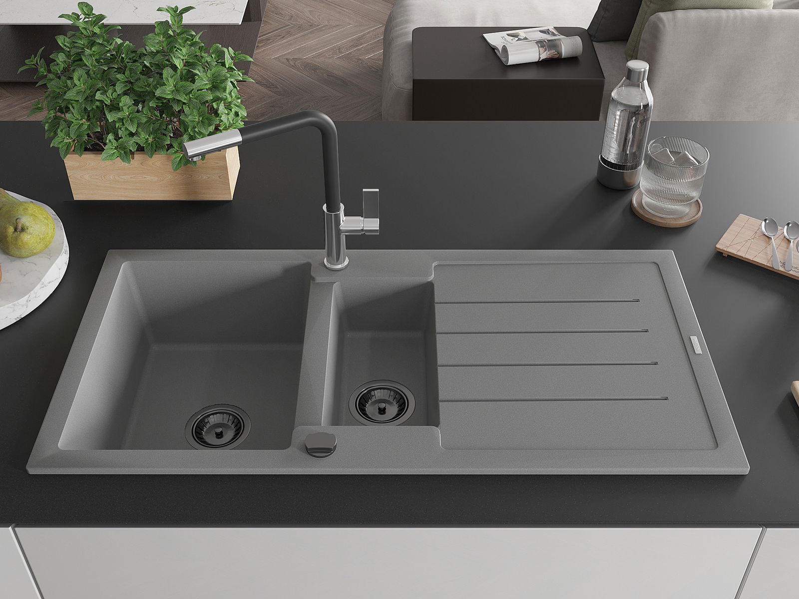 The sink is made of high quality granite. It is an elegant and, above all, practical complement to every kitchen, regardless of its style. High quality and granite durability ensure many years of use.