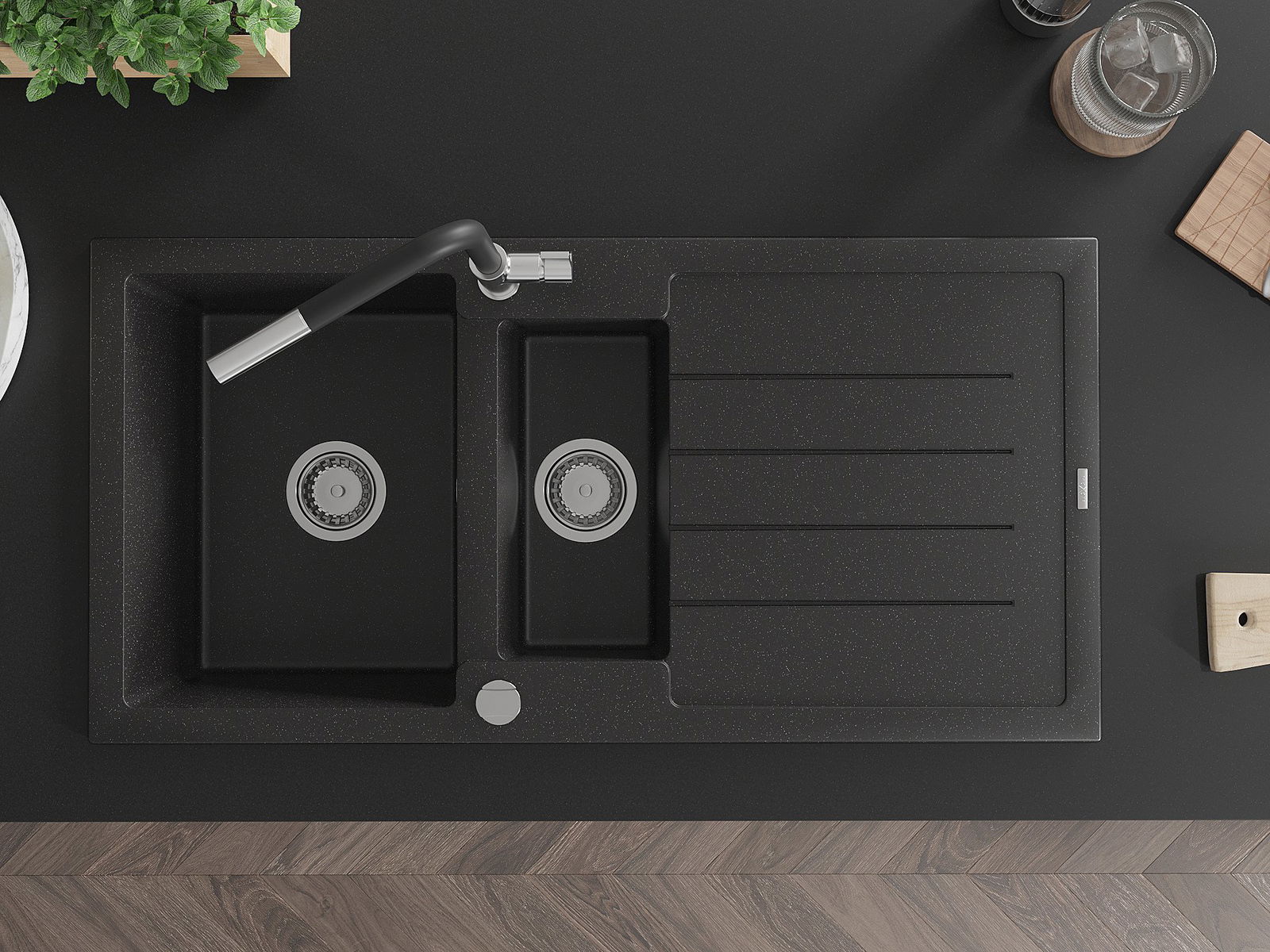 The sink is made of high quality granite. It is an elegant and, above all, practical complement to every kitchen, regardless of its style. High quality and granite durability ensure many years of use.