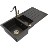 Mexen Andres Granite Sink 1.5-Bowl with Drainer and Flora Kitchen Tap, Black/Silver - 6515-73-670401-57-G