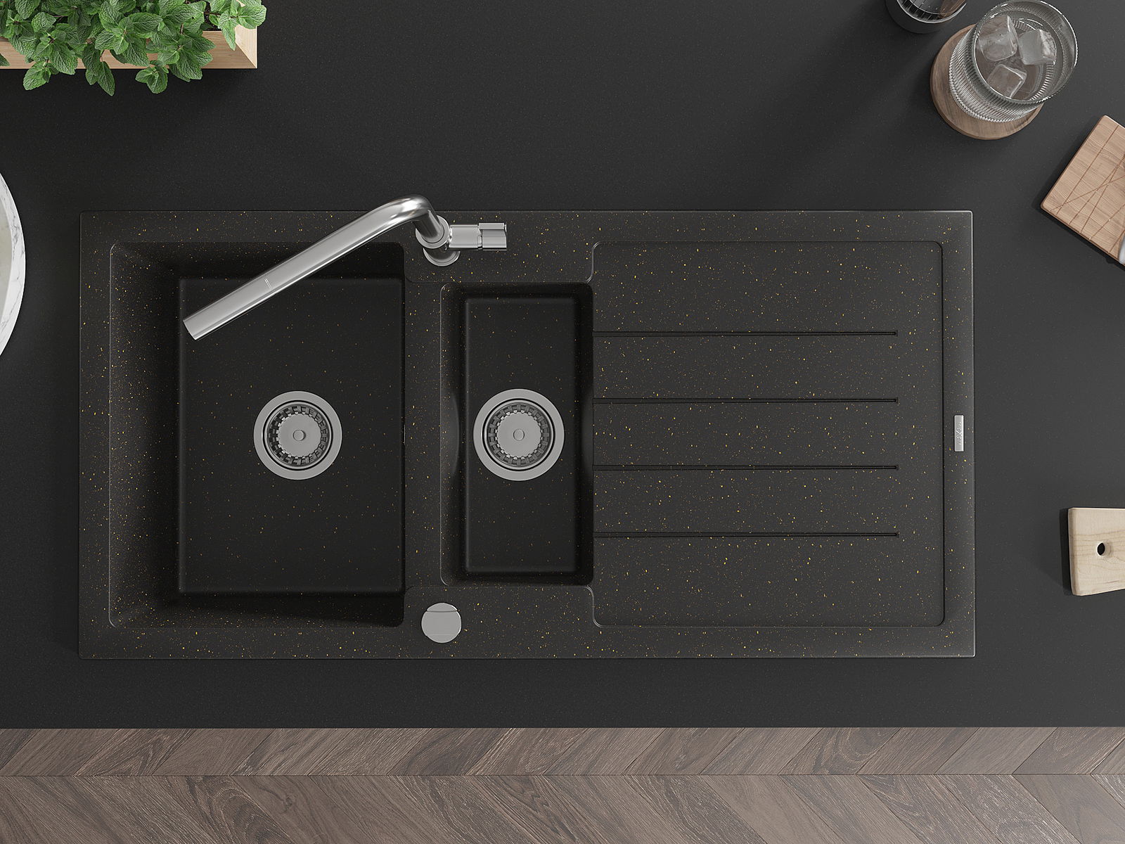 The sink is made of high quality granite. It is an elegant and, above all, practical complement to every kitchen, regardless of its style. High quality and granite durability ensure many years of use.
