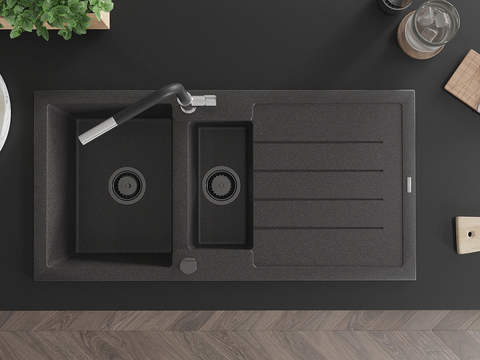 The sink is made of high quality granite. It is an elegant and, above all, practical complement to every kitchen, regardless of its style. High quality and granite durability ensure many years of use.