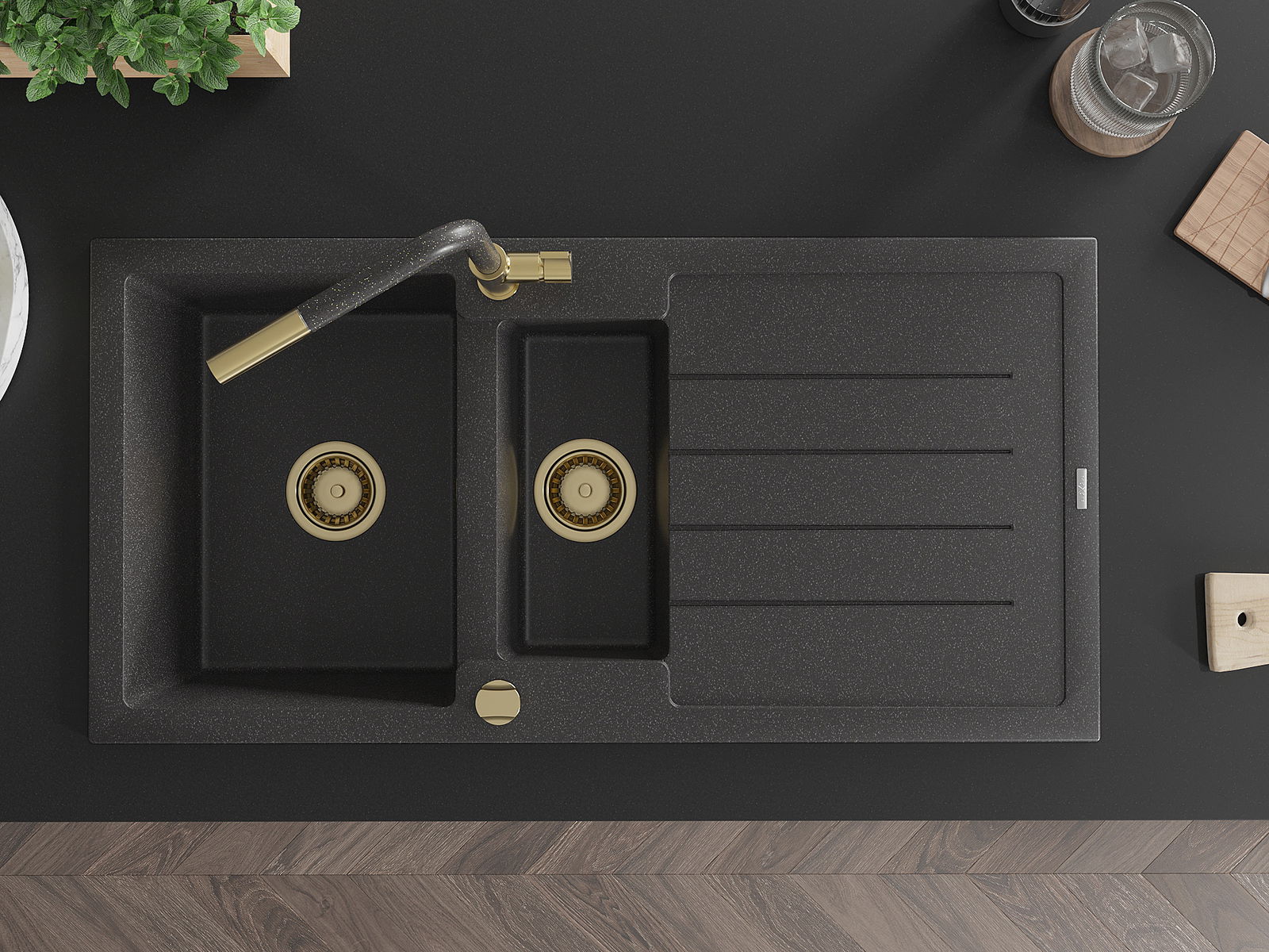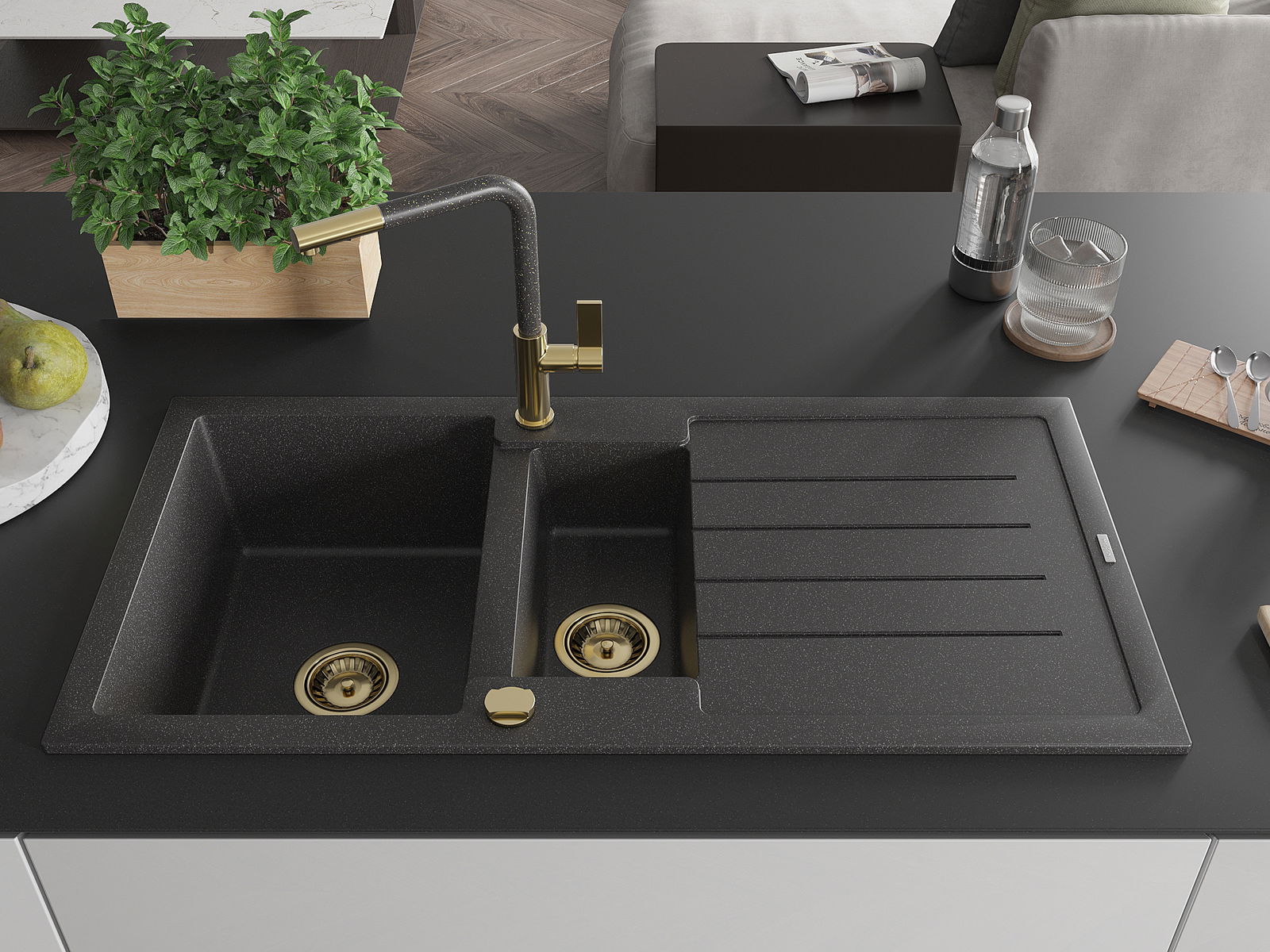 The sink is made of high quality granite. It is an elegant and, above all, practical complement to every kitchen, regardless of its style. High quality and granite durability ensure many years of use.