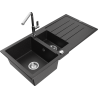 Mexen Andres 1.5-bowl Granite Sink with Drainer and Flora Kitchen Tap, Black - 6515-77-670401-00