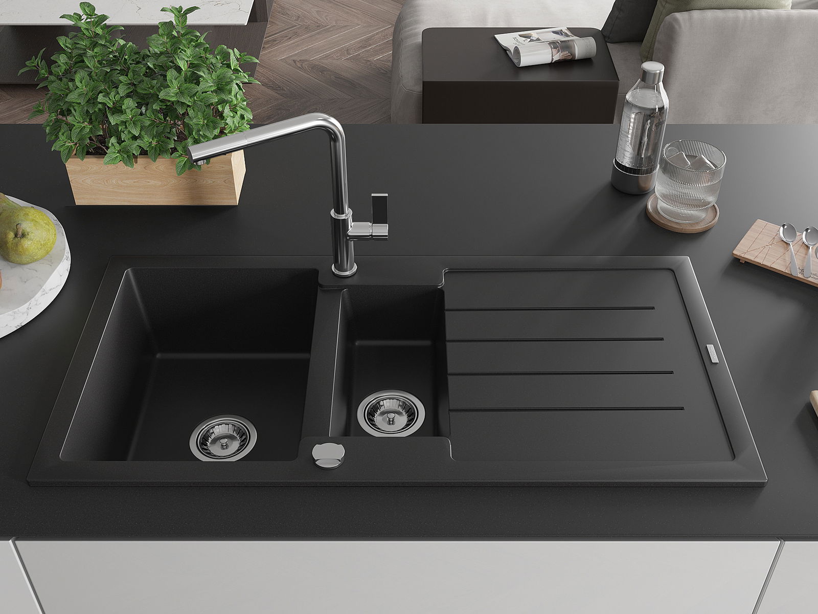 The sink is made of high quality granite. It is an elegant and, above all, practical complement to every kitchen, regardless of its style. High quality and granite durability ensure many years of use.